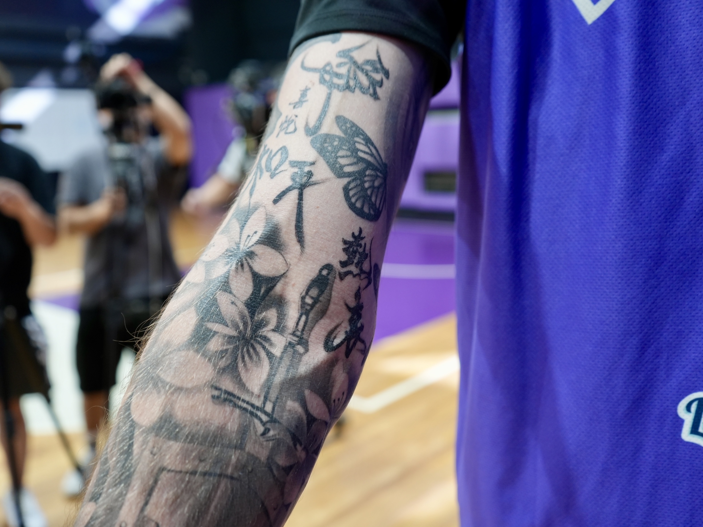 德魯右手佈滿刺青,而右上臂內側剛好有空的位置,來台之後就把他「補上」。