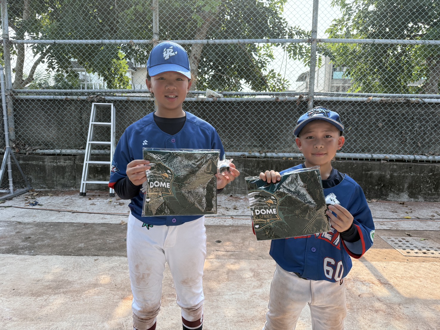 小球員開心展示由 台鋼雄鷹 提供的 MVP 獎品/台灣社區棒球聯盟提供。