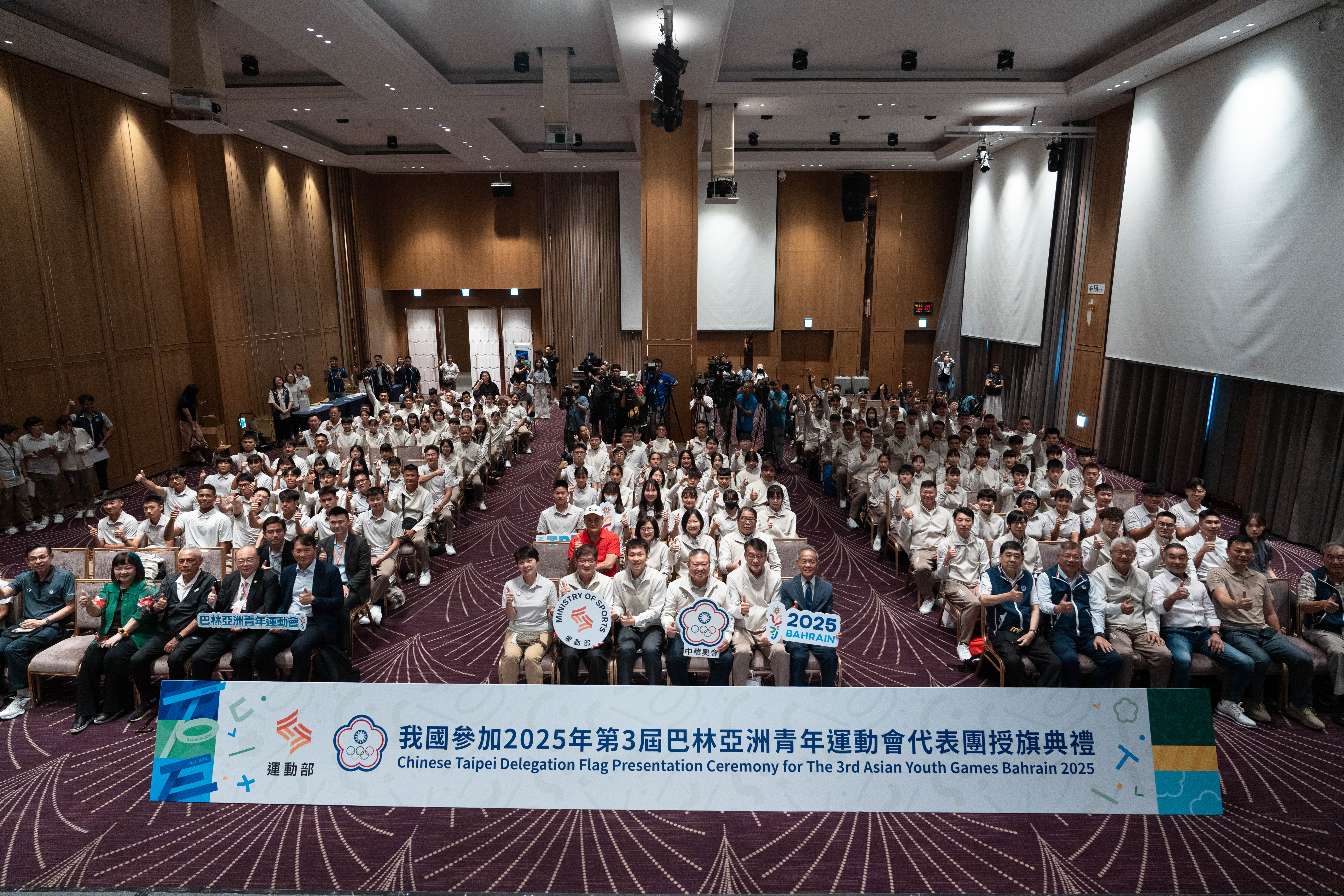 中華奧會與運動部今天舉行「第3屆巴林亞洲青年運動會」代表團授旗典禮。典禮由運動部部長李洋授旗並頒發加菜金,為即將出征的青年選手加油勉勵。