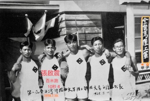 張啟震是臺中縣著名短跑名將,1938年於日本大阪參加台灣關西大學對抗賽,同時創造100公尺 10秒6、200公尺 21秒9全國紀錄;其中200公尺紀錄歷經22年才被另位傳奇、「十項鐵人」楊傳廣突破,100公尺紀錄更高懸32年才被蘇文和超越,可說是臺灣田徑奠基重要人物。