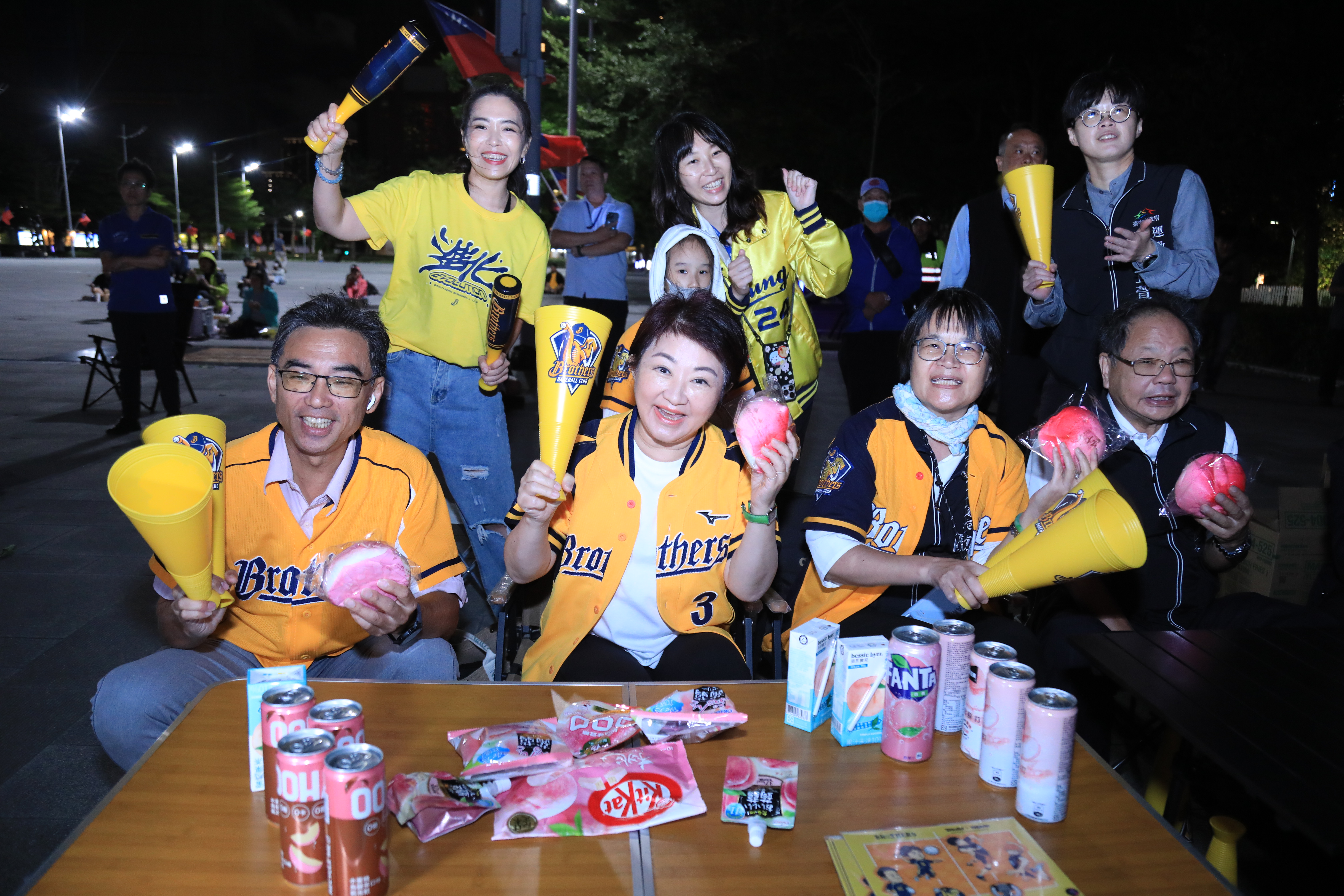 盧市長表示,台灣大賽採7戰4勝制的前4場賽事皆未在台中舉行。為讓市民感受應援熱情,市府今天特別用1300吋超大的戶外螢幕進行直播,她笑說,「今天一定要贏!」