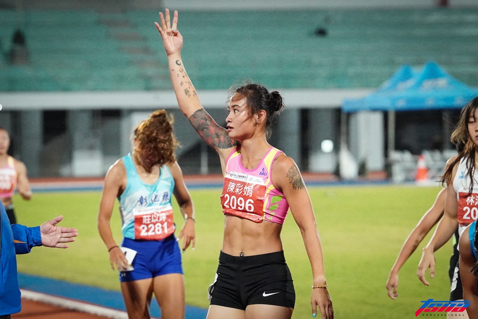 陳彩娟說:「應該是我體能提升了,這次原本重點也希望速度相關項目能展現出成果,都有做到,跳遠到6公尺,100公尺跨欄是久違的13秒開頭。以往我練習時其實速度都有那能力,主要是體能跟不上,所以比賽時無法支持把自己最佳速度都發揮出來。」