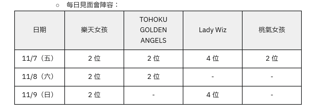 本次交流賽為回饋球迷熱情,滿足與啦啦隊近距離互動的願望,除了推出限定周邊外,更特別規劃了台日韓三隊啦啦隊共同參與的賽前見面會,而「桃氣女孩」也將於開幕日當天合體加入見面會陣容。