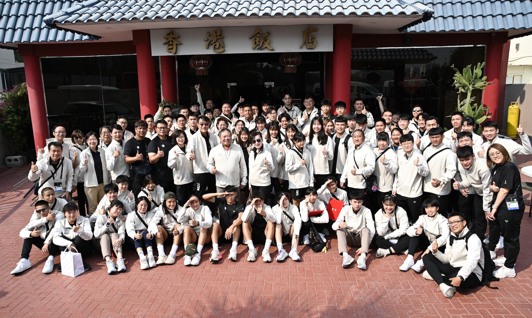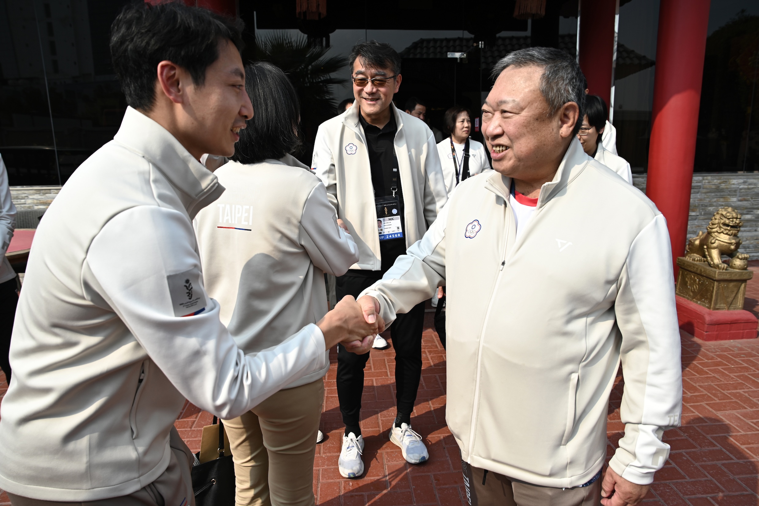 代表團當地時間10月31日中午特地選在中式餐廳舉行餐會,慰勞連日征戰的隊職員。中華奧會主席林鴻道和總領隊林瀛洲也代頒發政府賀電,勉勵選手。