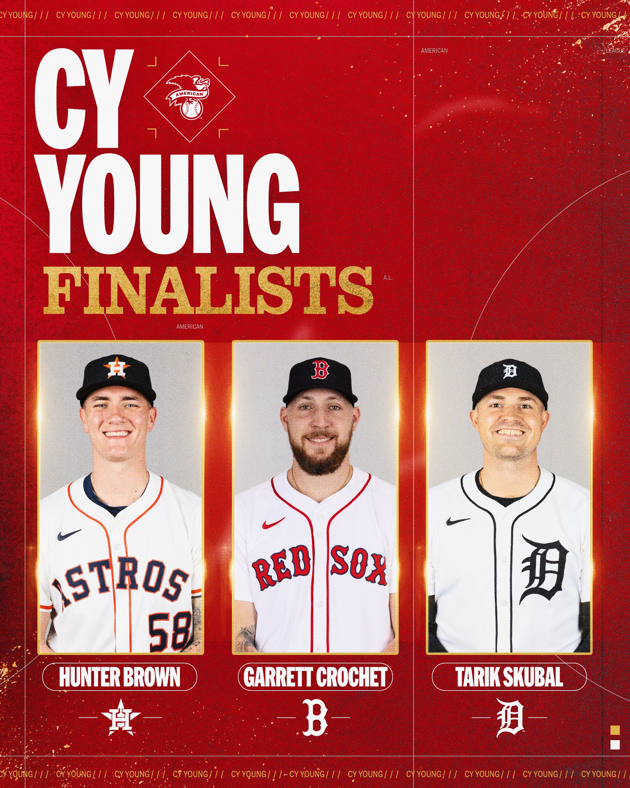 Hunter Brown(左起)、Garrett Crochet、Tarik Skubal入圍美聯賽揚獎。取自大聯盟X