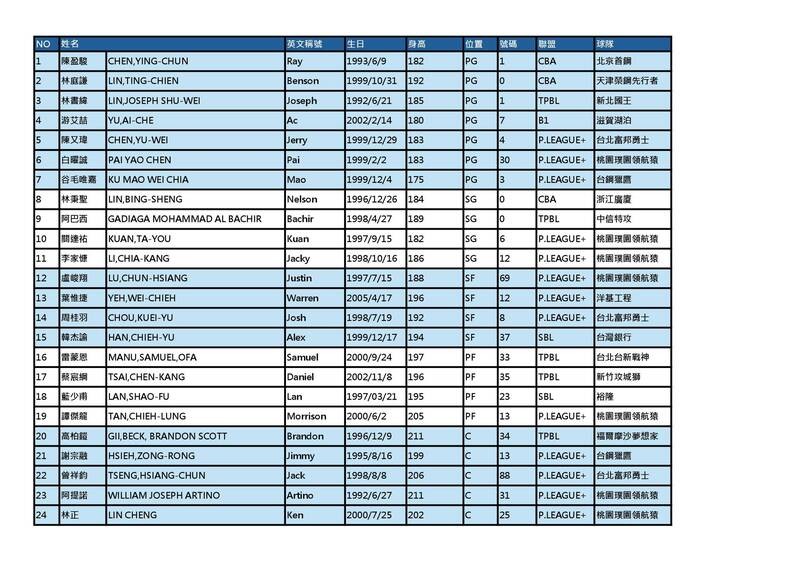 世界盃資格賽24人名單。(籃協提供)