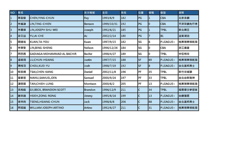 世界盃資格賽16人名單。(籃協提供)