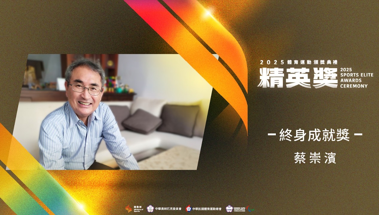 「終身成就獎」旨在表彰對我國體育運動奠基與推展有巨大貢獻的巨擘,今年獲此殊榮的蔡崇濱先生一生深耕體育教育與排球運動,在排球培訓貢獻及世代傳承寫下不朽傳奇。細數蔡崇濱先生曾任國立成功大學男排教練,一手開創1974年大專盃三連霸盛世,並帶領成大女排隊連續奪冠,更指導民德國中女排隊勇奪1984年瑞典戈夏盃冠軍等國際頂尖佳績。他在學術上發表超過200篇論著,並擔任國家代表隊訓輔與運科委員,擘畫培訓制度,推動國際交流。蔡崇濱先生身兼悍將、教練、學者多重身份,其嚴謹治學與利他胸襟,即使燃燒到生命的最後一刻,仍不忘終身志業,對臺灣體育發展、人才培育與競技水準提升,留下永遠的典範。