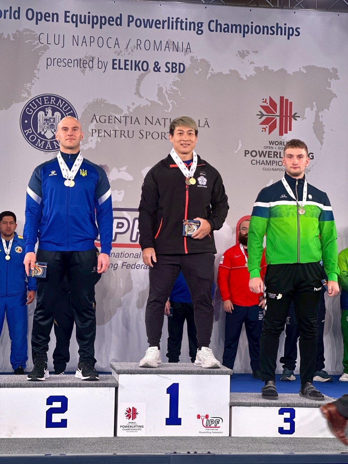 我國健力選手江凱傑在羅馬尼亞克盧日那波卡參加「2025年世界公開裝備健力錦標賽」展現卓越實力,於當地時間11月12日完成賽事,奪得男子組83公斤級硬舉項目金牌。