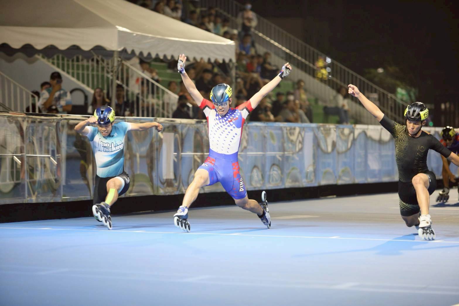 2025台灣國際滑輪溜冰公開賽14日在台南市永大溜冰場進行第二天賽事,進行10000公尺淘汰和1000公尺爭先賽,屏東選手表現精彩,在競爭激烈的大專社會男女子組共摘下3金,唯一1金被韓國亞運選手崔因鎬帶走,彌補了他在2年前於杭州亞運被中華隊黃玉霖最後一腳搶走金牌遺憾!