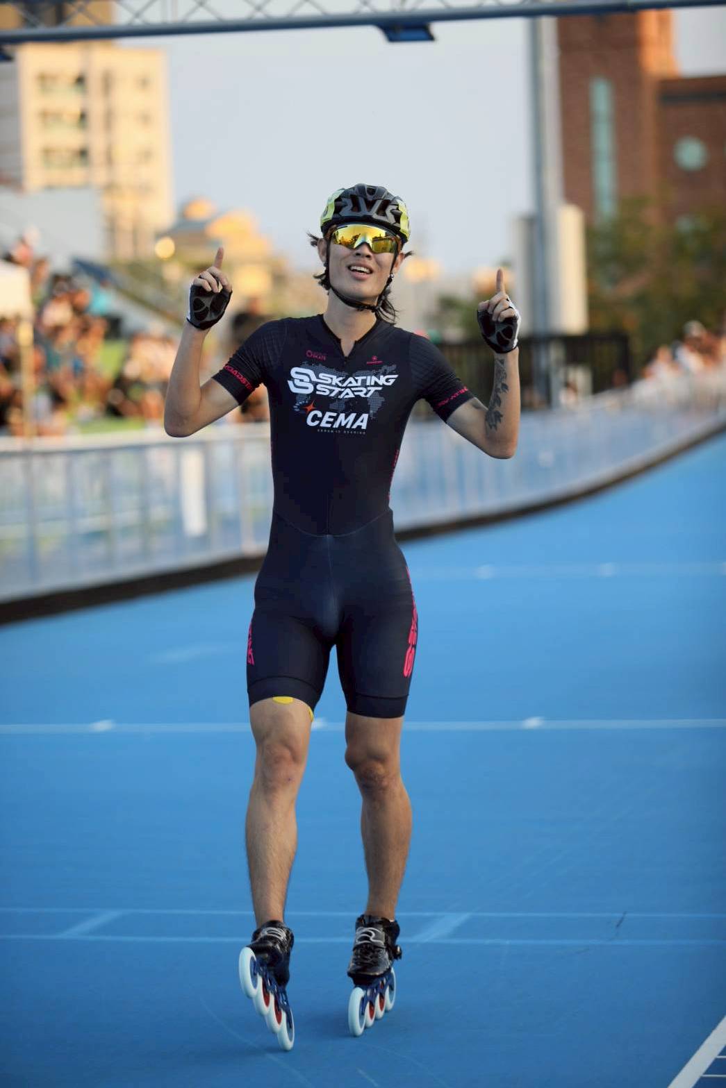 有趣的是,崔因鎬、崔光浩便是在杭州亞運男子滑輪競速3000公尺接力決賽中被台灣黃玉霖在最後衝終點時升腿逆轉奪走金牌的選手,當時一頭金髮的崔因鎬賽後更是忍不住崩潰大哭,如今時隔兩年之後,崔因鎬來到台灣今順利讓他拿下10000公尺淘汰賽金牌,當時一頭金髮的崔因鎬如今已經重新變回黑髮。