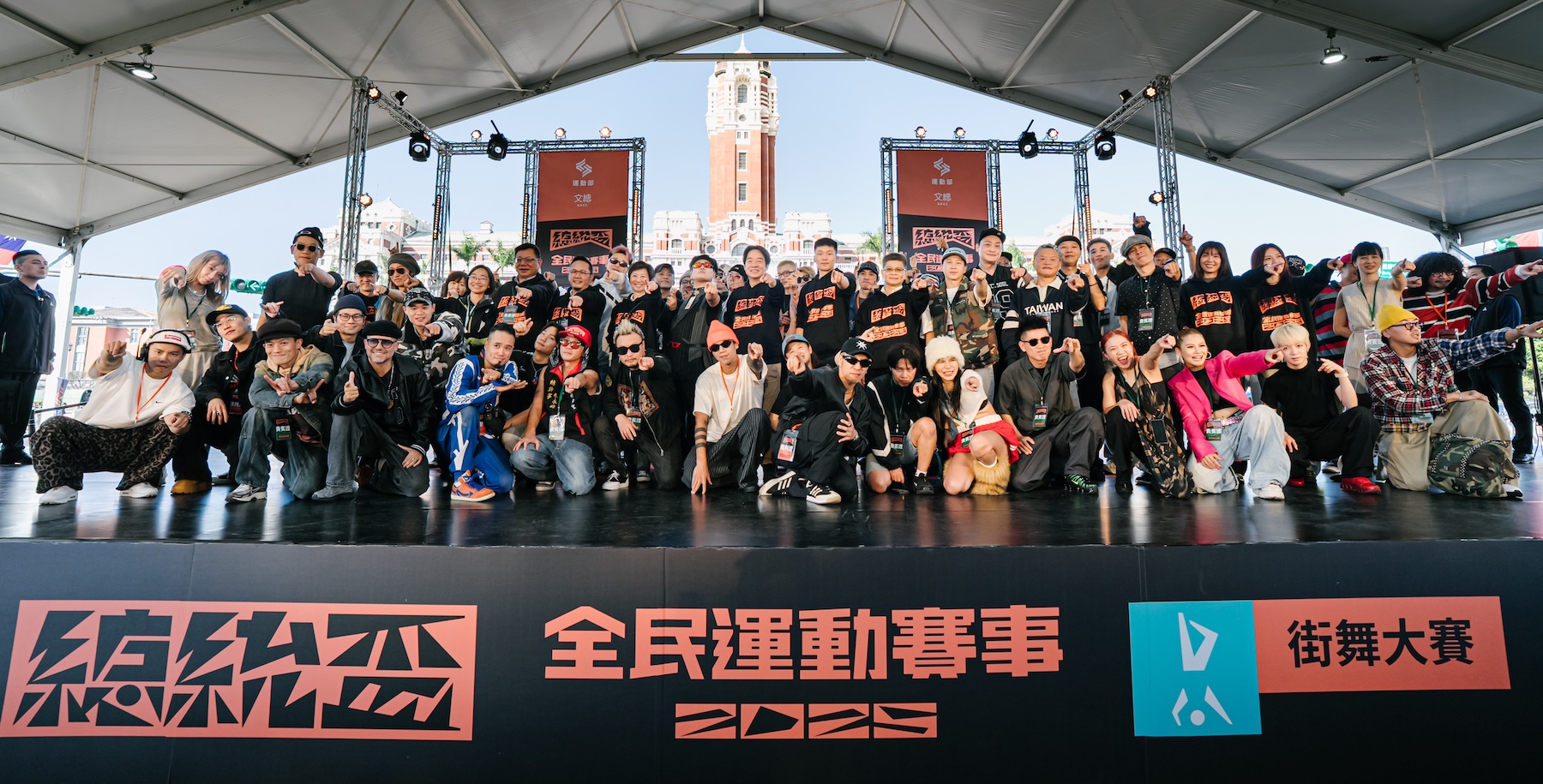 由運動部主辦 「2025總統盃全民運動賽事-街舞大賽」決賽,今(16)日在臺北凱達格蘭大道盛大開跳,全臺上千名舞者齊聚,創下臺灣街舞比賽參賽組數與規模新紀錄,也是臺灣史上首次有街舞登上總統府前舞臺,更是全球極少數能在國家象徵地標舉行的街舞盛會,象徵街舞文化正式從街頭走向主流,成為全民運動的新篇章。