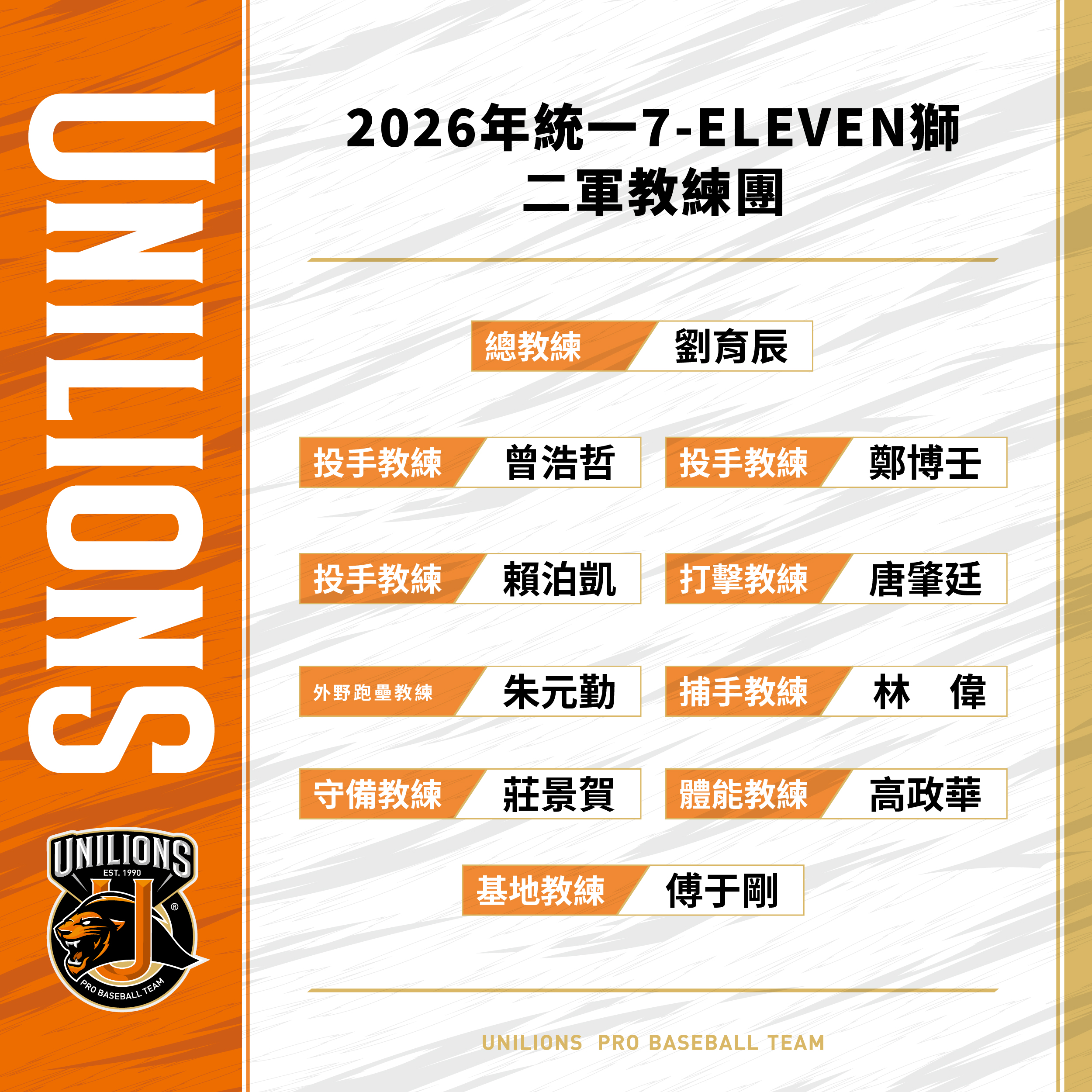 2026 年統一 7-ELEVEN 獅教練團