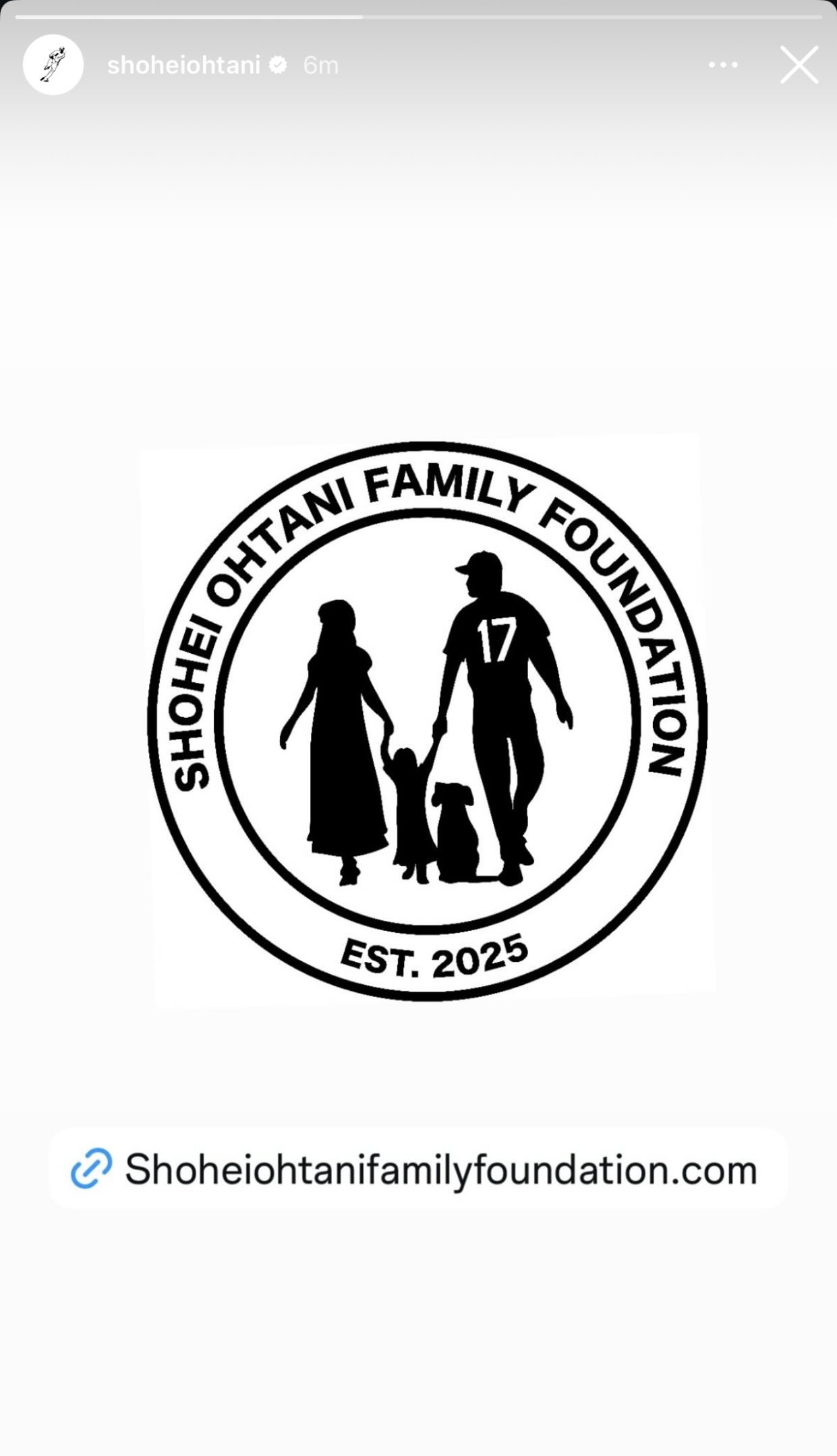 該基金會名為「SHOHEI OHTANI FAMILY FOUNDATION(大谷翔平家庭基金會)」,其標誌設計包含了背號 17 號的大谷本人、他的妻子真美子、今年出生的長女,以及他們的愛犬 Dekopin(彈額頭),象徵著他的『家庭』。」