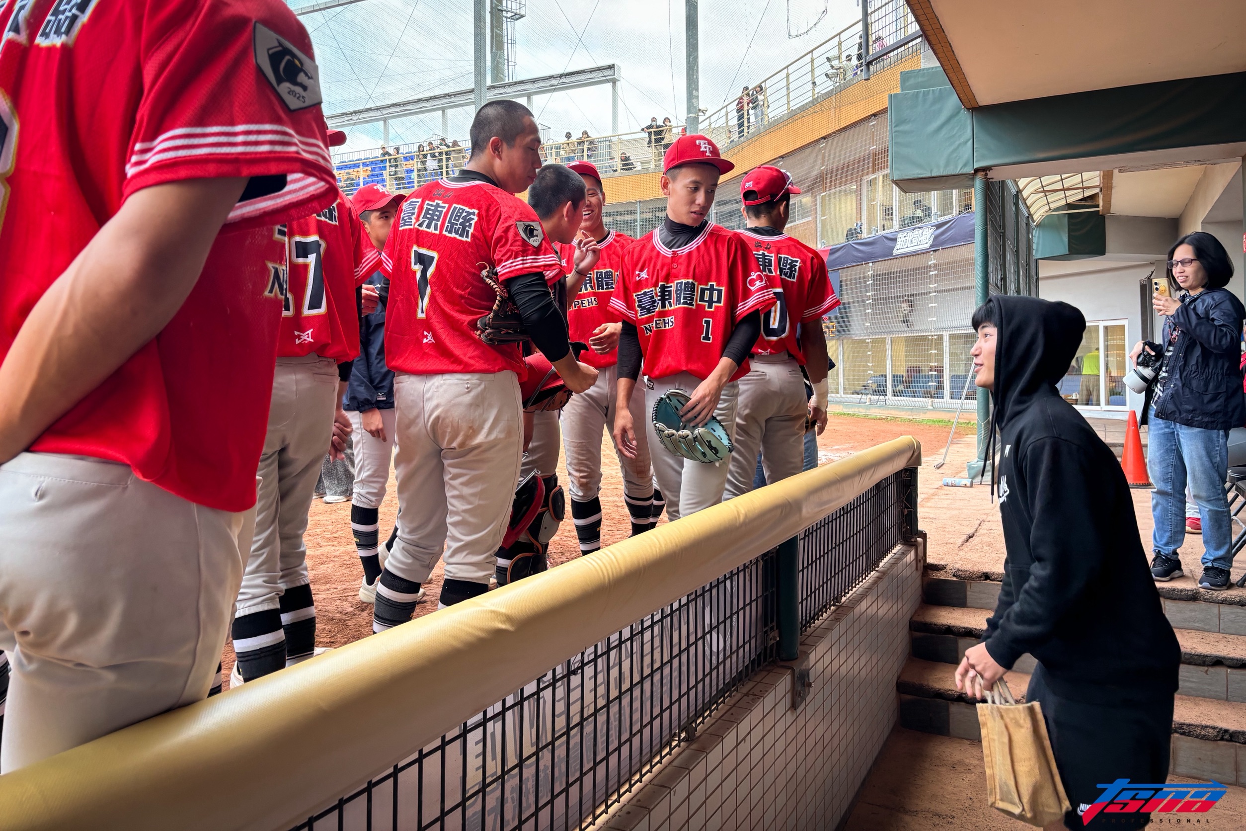 由於台東體中主帥陳峰岳24日就生日,東體贏球後,全隊也祝總教練生日快樂,陳世展也跟學弟一起喊聲,回味高中生涯。