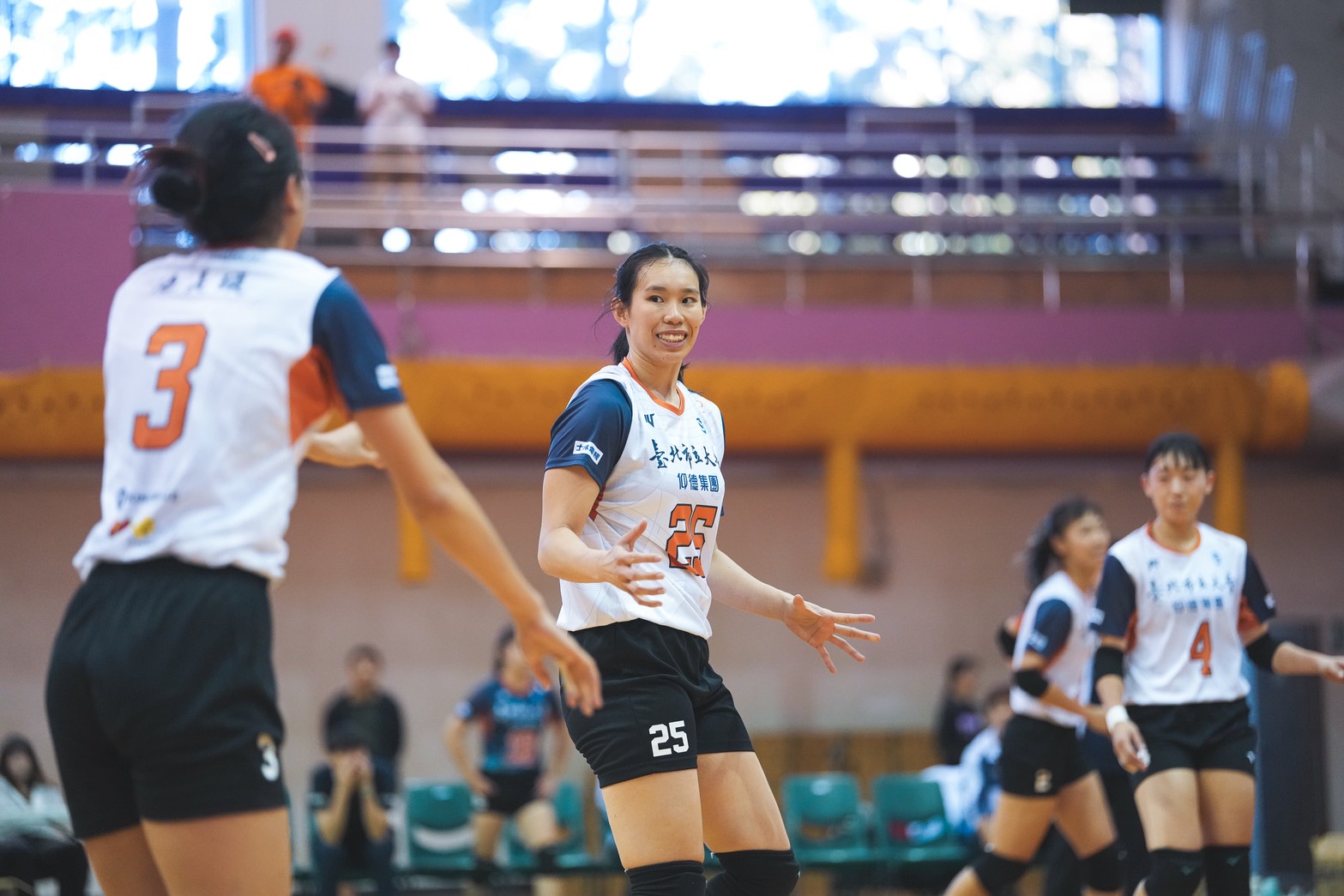 亞洲軍團4人,來臺最久是四年級日本舉球員浦山愛嘉,也是唯一非華人,但已能用流利中文對話,她說:「去年第一次打大專聯賽,很緊張,今年比較自在,上場就是把練習成果發揮出來就好。我不高(163公分),所以想把防守做好,今天在後排有好幾球還是沒守好,希望後2天預賽能更好。」