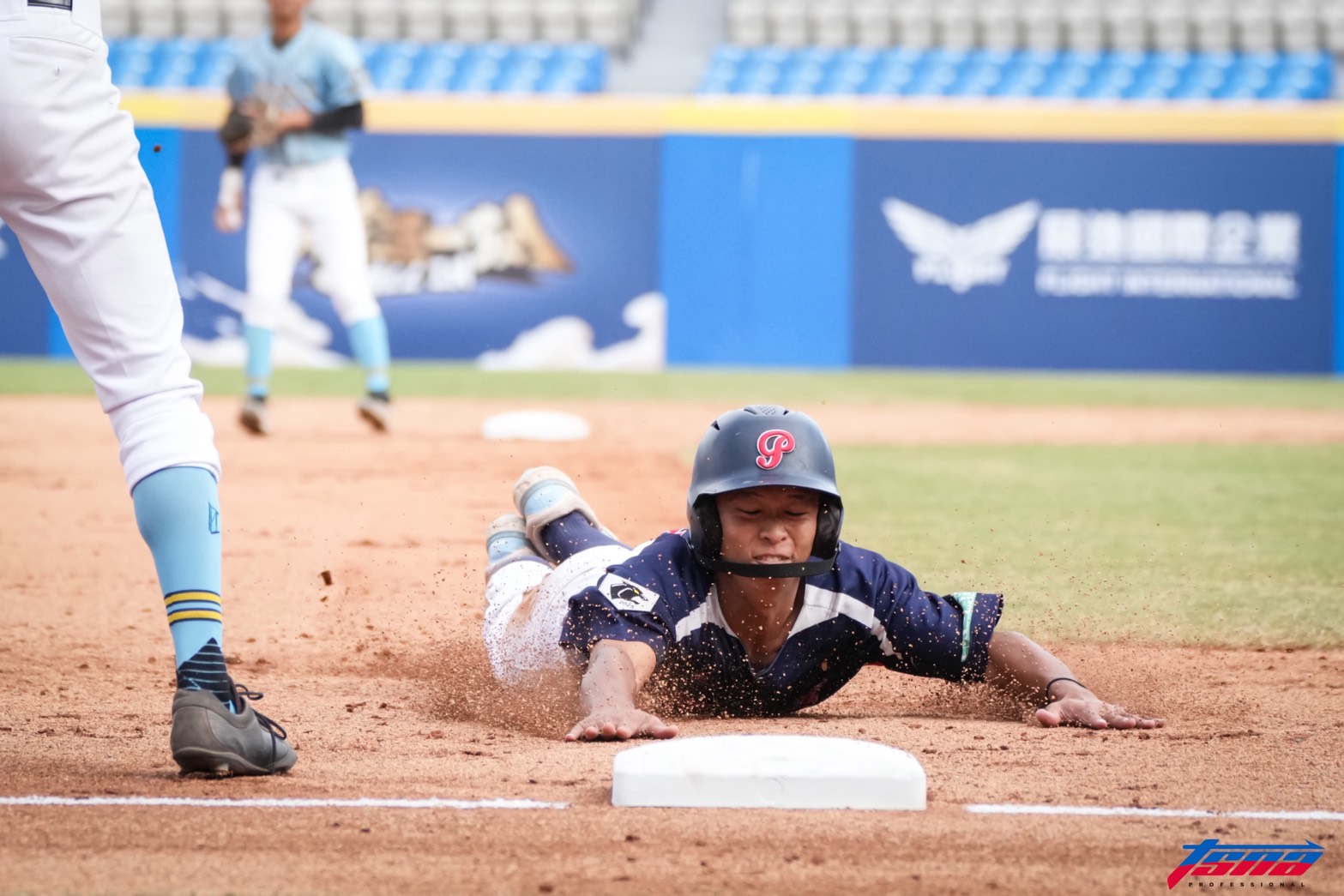 不過平鎮高中畢竟是青棒強權,吳承顥這場比賽在前3局都沒被敲安,隊友在3局下掌握機會,吳柏承獲得保送,接著短打推進,劉柏宇也選到保送上壘,邱聖安敲出左外野安打先馳得點,林頡廷保送後被換下,高宥軒敲出2分打點適時安打,一舉拉開比數。