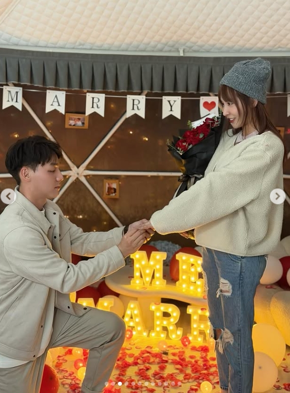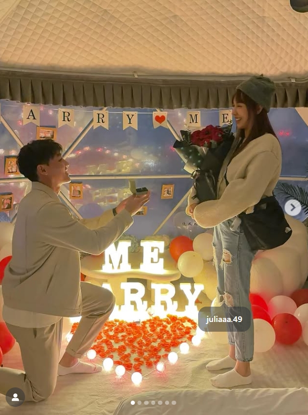 陳晨威在IG發文:「Marry me 💍💕😘@juliaaa.49」,分享6張求婚的照片,其中一張是二人深情親吻照。
