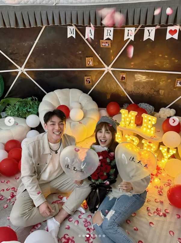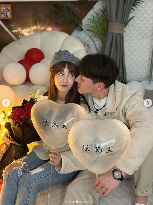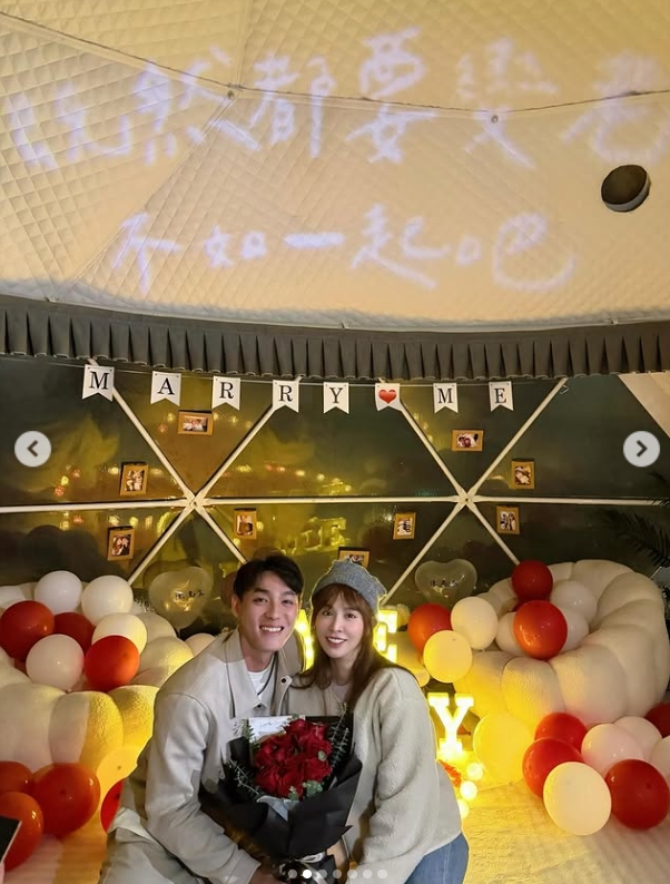 陳晨威親吻求婚!啦啦隊女神啾啾。取自陳晨威及啾啾IG
