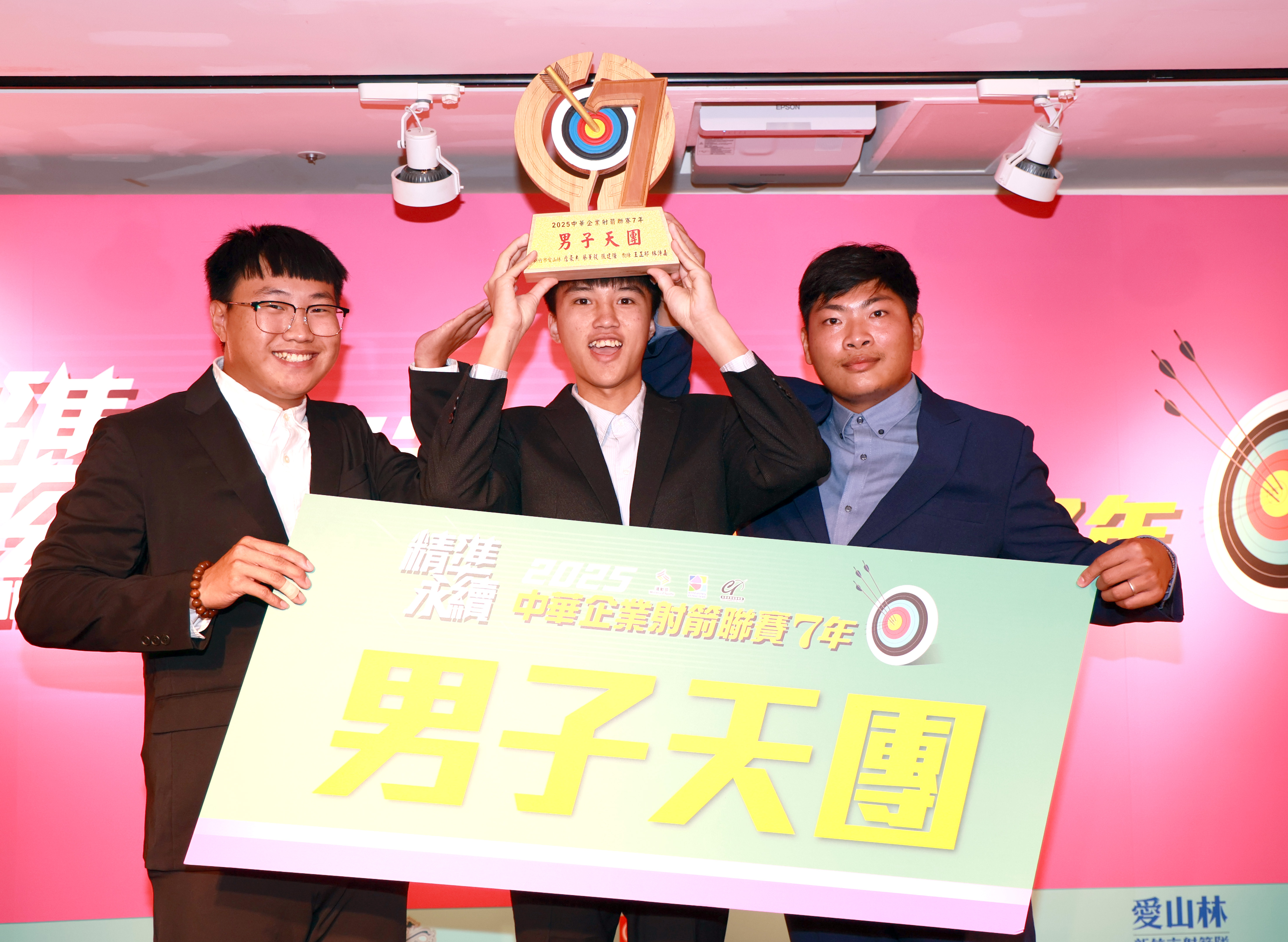 男子天團由新竹市愛山林詹豪杰、張建強、蔡薰毅拿下。張建強說:「很感謝新竹市愛山林射箭隊能選我加入,很高興能為團隊取得這份榮耀。」女子天團是寒舍集團林佳恩、方婉婷、謝佩涓,她們也感謝團隊支持。