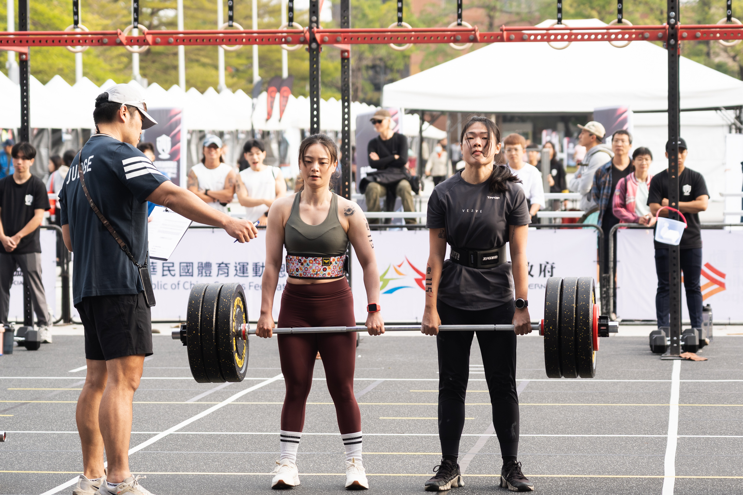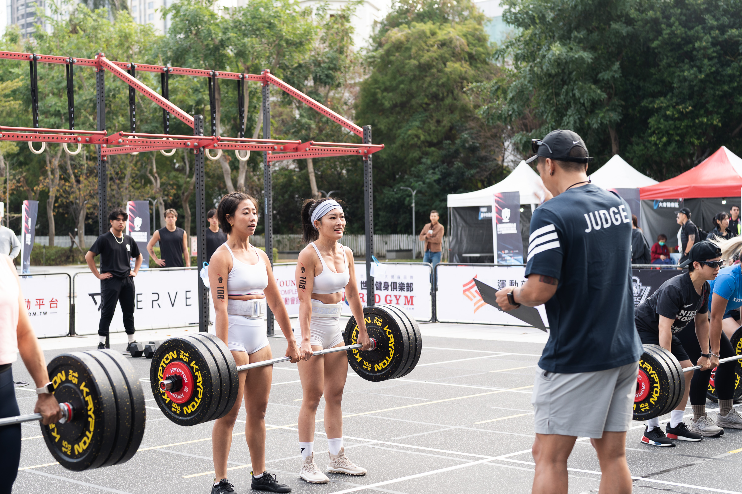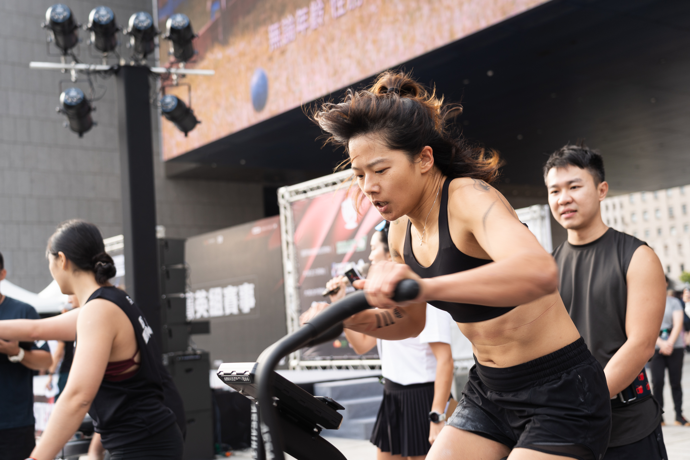鄭副市長強調,這場賽事不僅有各國菁英選手精彩對決,還有臺中在地藝人加入挑戰,為活動增添亮點。啦啦隊女神「壯壯」拋開甜美形象,挑戰 15 公斤拉輪胎、20 磅沙袋拋擲;嘻哈團體草屯囝仔成員李倉則負重架 80 公斤、拉 30 公斤輪胎,在高強度間歇訓練下完成 3,500 公尺路跑,展現驚人毅力。