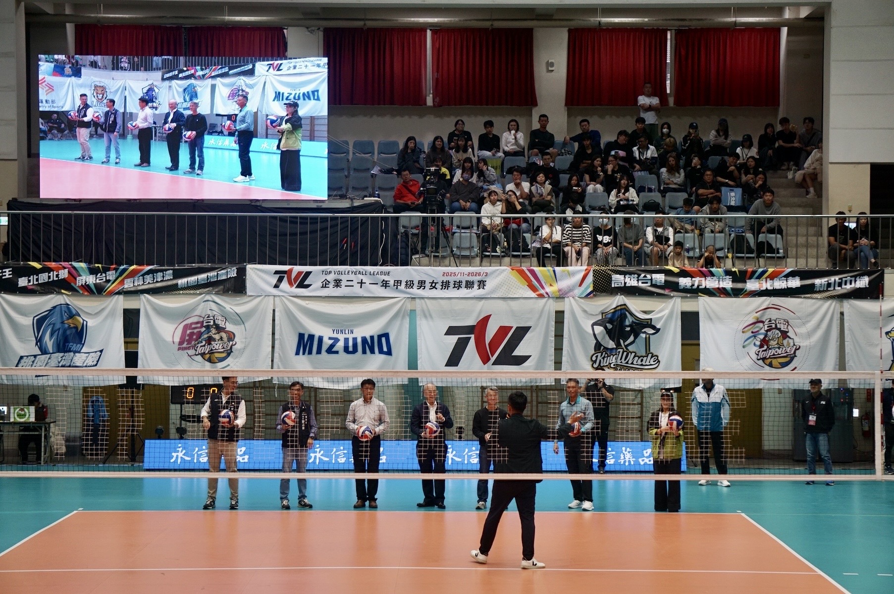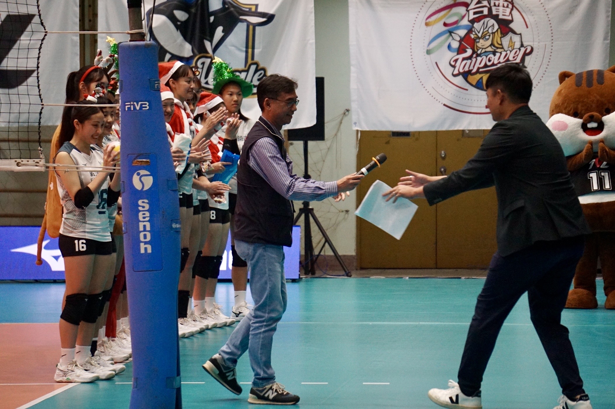 企業21年甲級男女排球聯賽本週在台中東山高中開打,也是義力營造女子排球隊主場。台中市政府運動局長游志祥等人今天擔任開球貴賓,而游志祥恰巧又是壽星,現場除了聖誕氣氛,還多了生日快樂的祝福。