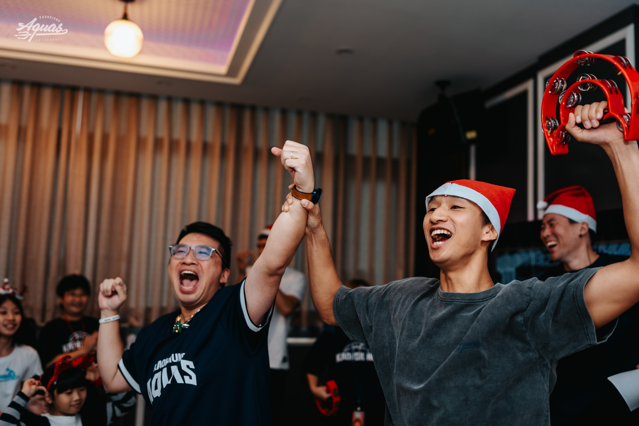 「浪⼈情歌之享⾒你」連續第二年舉辦,吸引近30位神隊友報名參加,更有4組家長帶著小朋友前來同樂。神隊友除了與球員包廂同樂、遊戲互動,領取任務卡闖關還能獲得「享溫馨聖誕紅包」及嗨唱必備澎大海。
