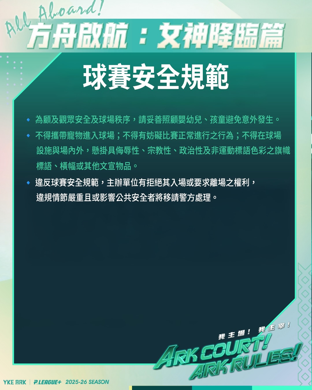 新成軍的新竹洋基工程籃球隊行銷話題不斷,明天將展開「All Aboard! 方舟啟航 女神降臨篇」主題週。球團也公告,禁止攜帶300mm及以上規格之望遠鏡頭(含各式腳架)入場,以免影響觀眾席動線及觀賽。