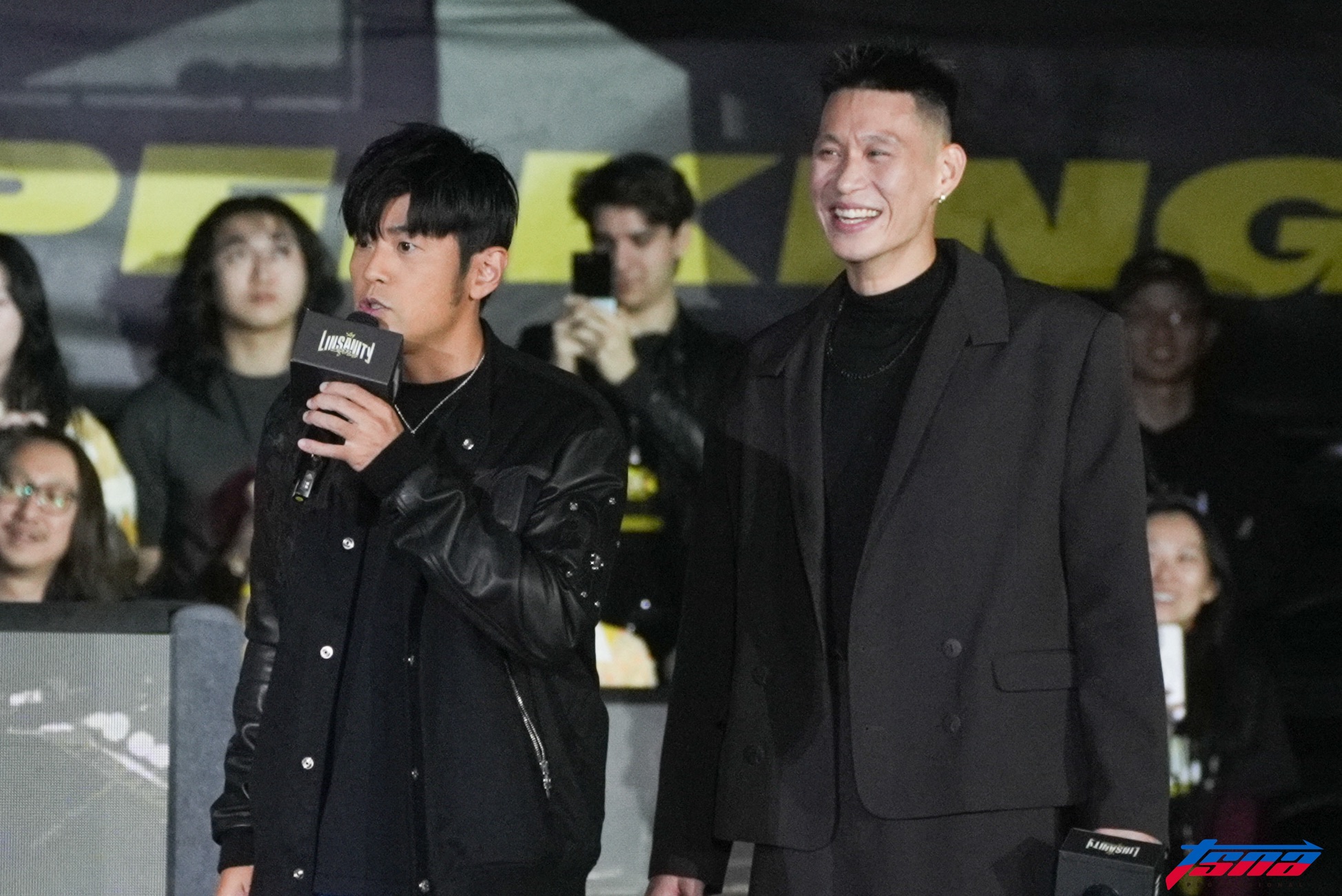 林書豪今天退休儀式由瘦子(E.SO)擔任表演嘉賓,球團事前更預告將有一位「神秘嘉賓」現身,球迷從剪影中紛紛猜測是與林書豪交情甚篤的「華語流行天王」周杰倫,最終在眾人期待下現身,掀起全場高潮。林書豪看到當下更表示,「他騙我,他說他來不了。」周杰倫則笑說,「你今天穿西裝好正式。」
