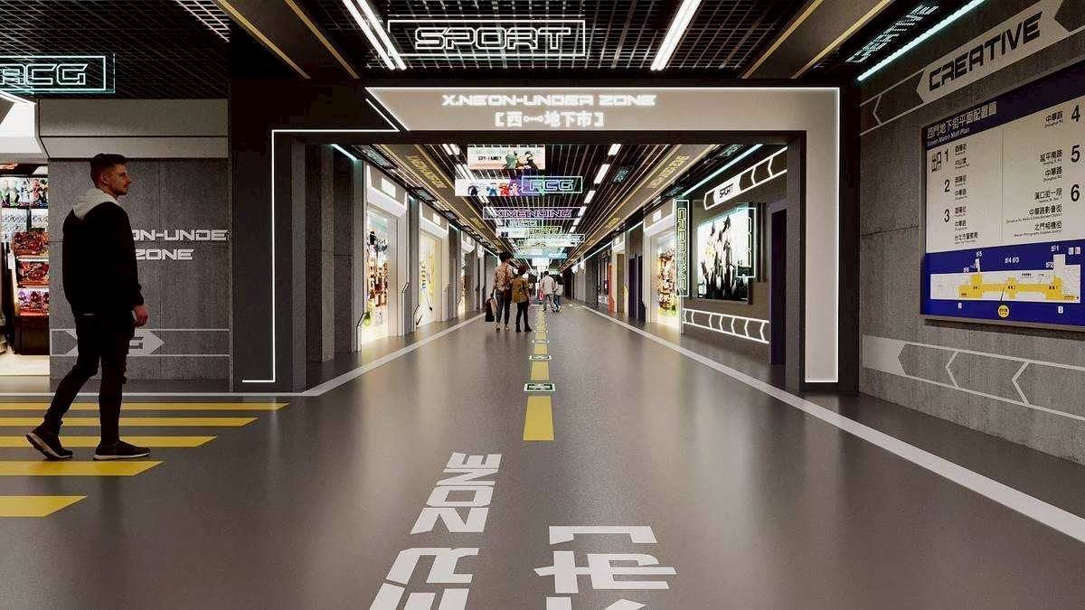 XIMEN西門地下市打破「地下街只是通道」的刻板印象,轉型為結合 K-pop、動漫與二次元文化的潮流娛樂聚落。整體空間以酷帥深灰調搭配霓虹光影設計,營造強烈視覺風格,鎖定年輕族群與次文化圈層,也被視為西門町商圈再進化的重要里程碑。