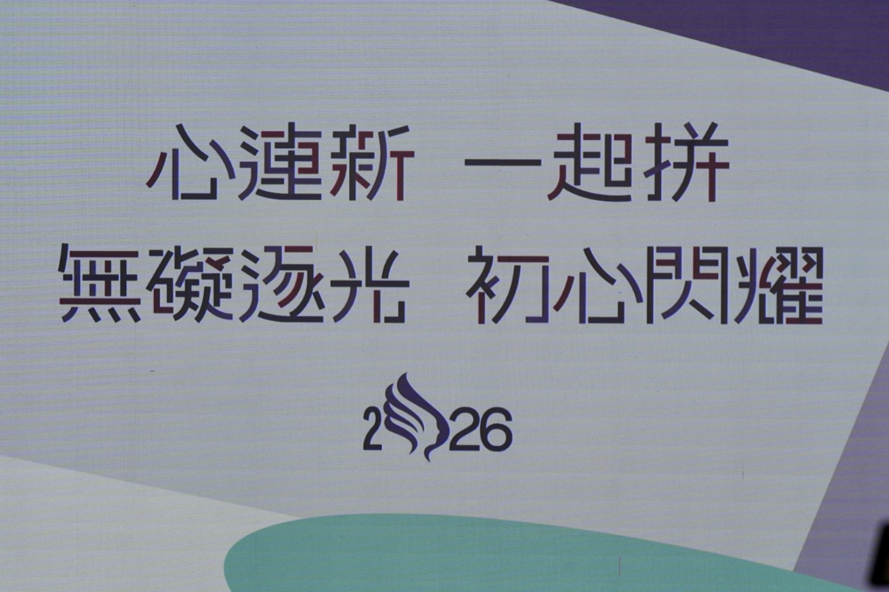 侯友宜表示,今天外面很冷,主視覺標語「心連新 一起拼」,希望用新北市的熱情,來團結連結。