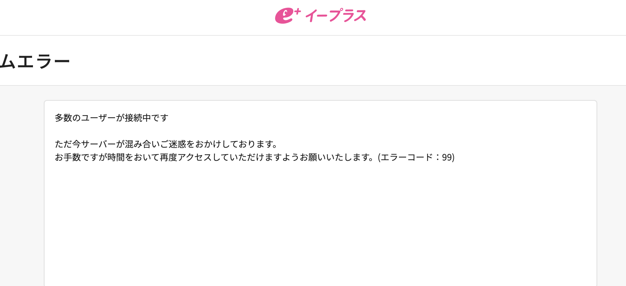 e+(イープラス)網站也因為被球迷購票灌入,形成大幅混雜的狀況,球迷一直看到「忙碌中」或是轉圈圈,但就是無法買票。