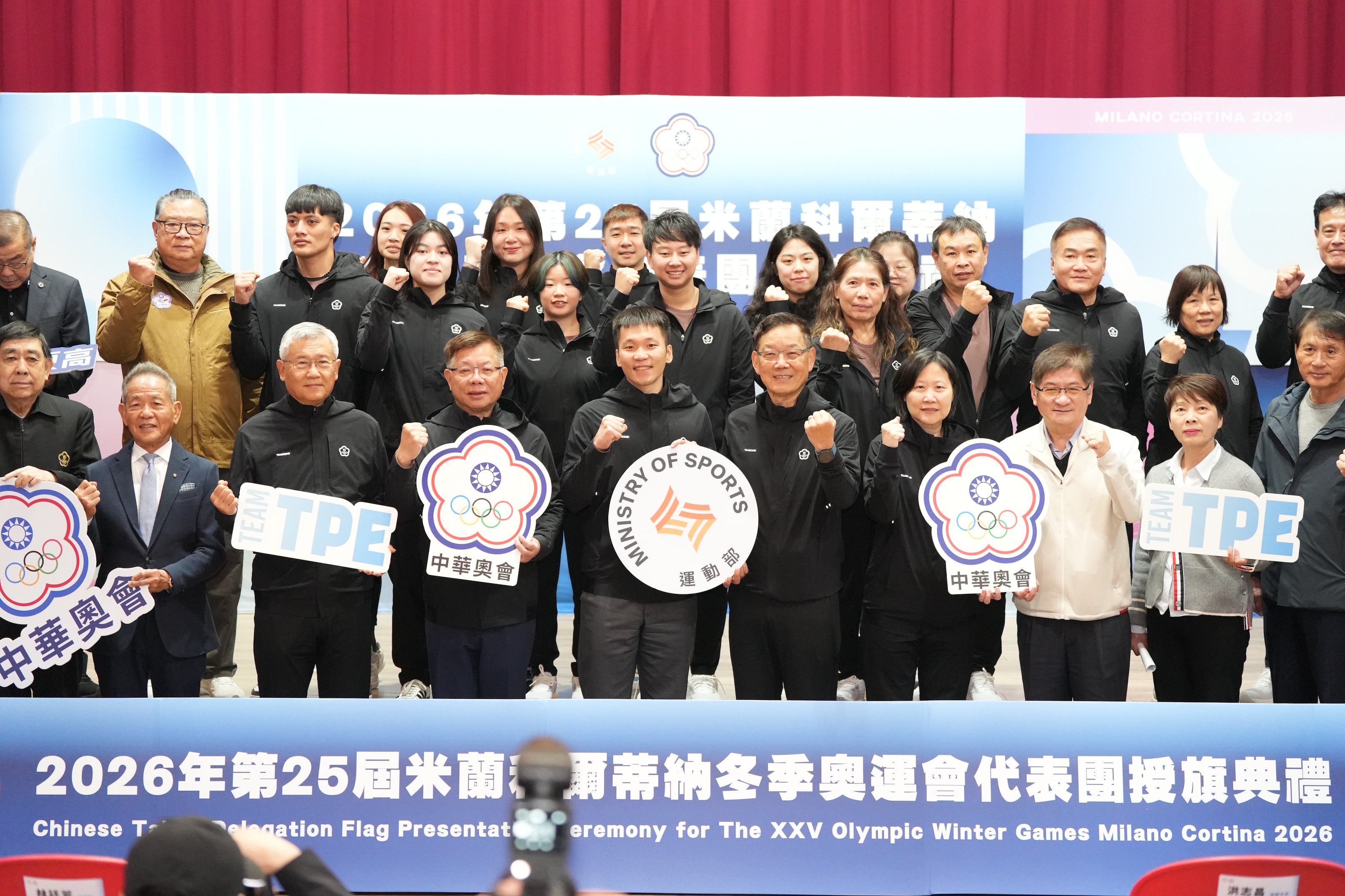 第25屆米蘭-科爾蒂納冬季奧林匹克運動會即將展開,運動部和中華奧會今天舉行代表團授旗典禮。(李宇政攝)