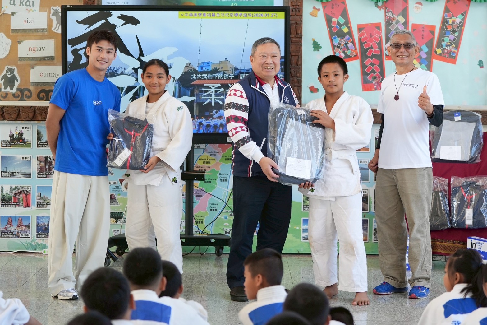 中華奧會團結基金計畫今年正式啟動,1月19日分別前往宜蘭縣大同鄉大同國中、南山國小,捐贈體育用品、撒下希望種子。今天繼續到武潭國小、來義高中,兩校的校長鄭志隆和賴俠伶詳細介紹校況,也感謝團結基金支持,讓學子近距離接觸「柔道男神」。