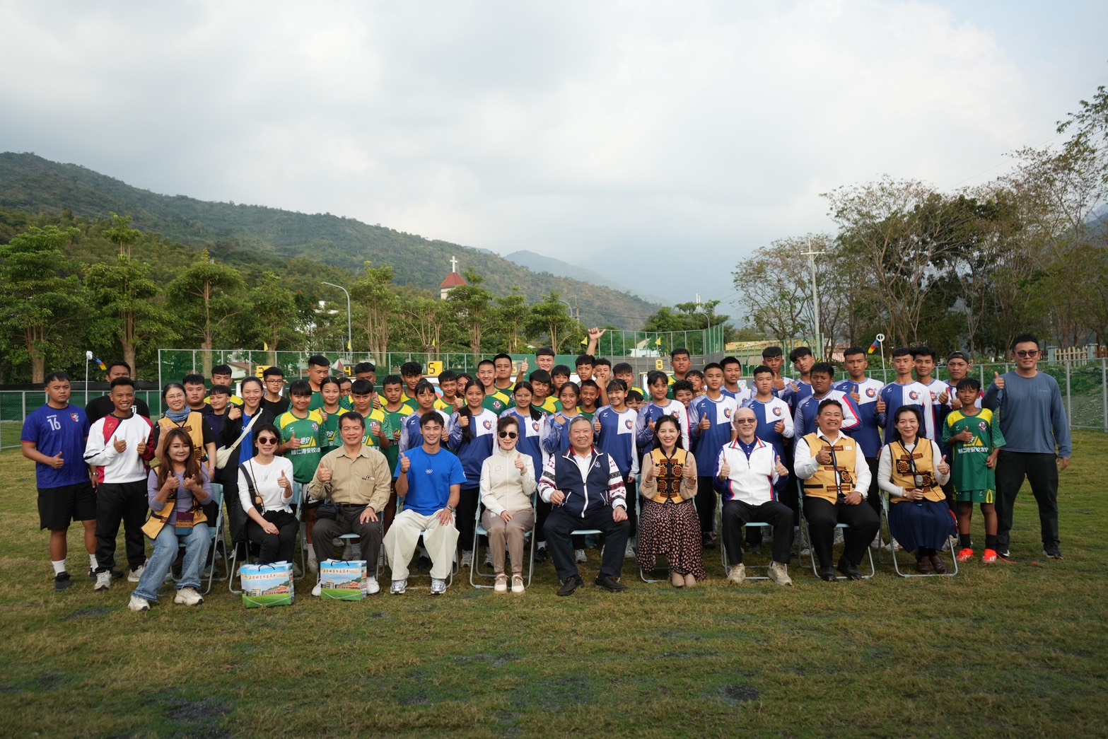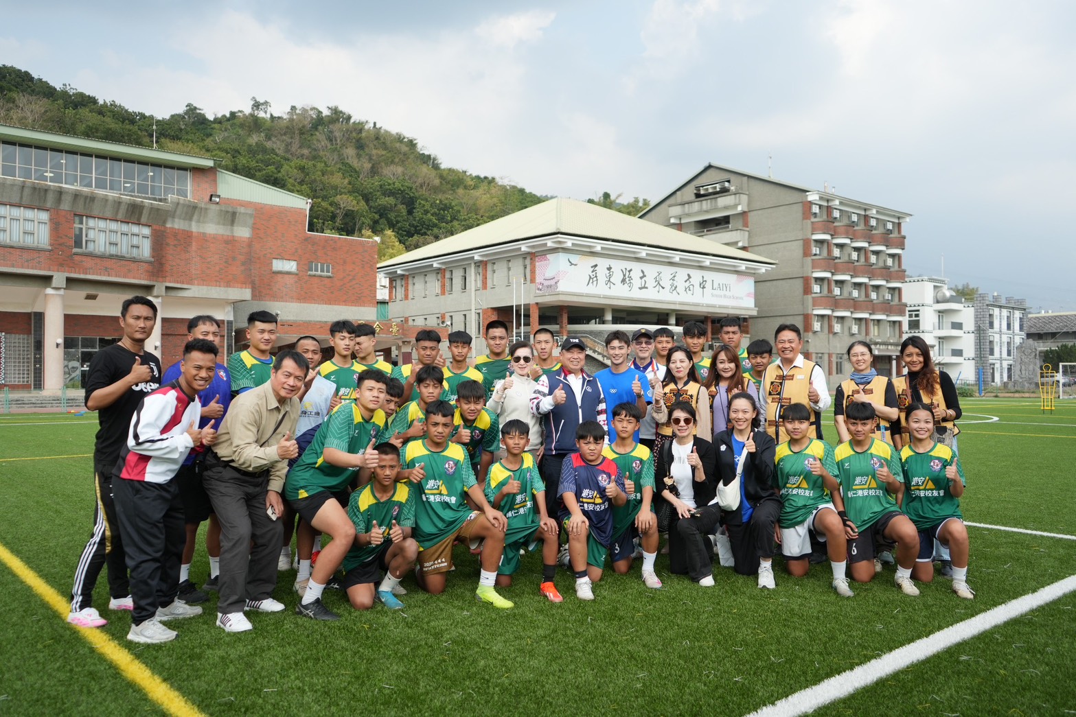 中華奧會團結基金召集人林鴻道等人,前進屏東武潭國小、來義高中勉勵學子。(中華奧會提供)