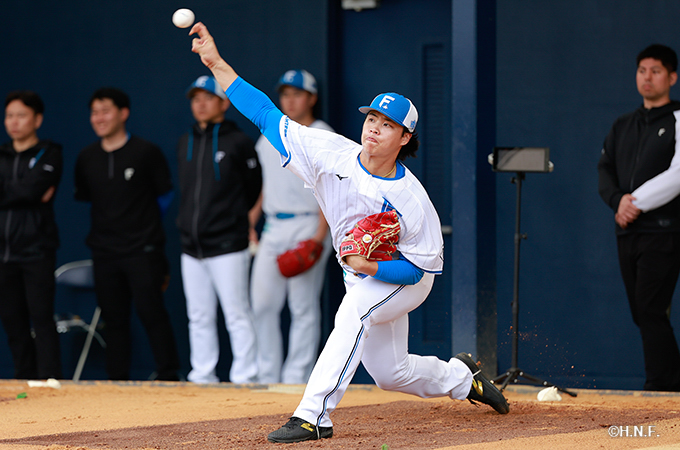 日本火腿今天進行春訓首場隊內紅白戰,安排兩位台將先發,將各投1局。白組先發古林睿煬及紅組孫易磊都已完成投球,看起來兩人狀況都有進度內,都已催出150公里以上球速,但孫易磊面對首名打者水谷瞬被轟出全壘打。