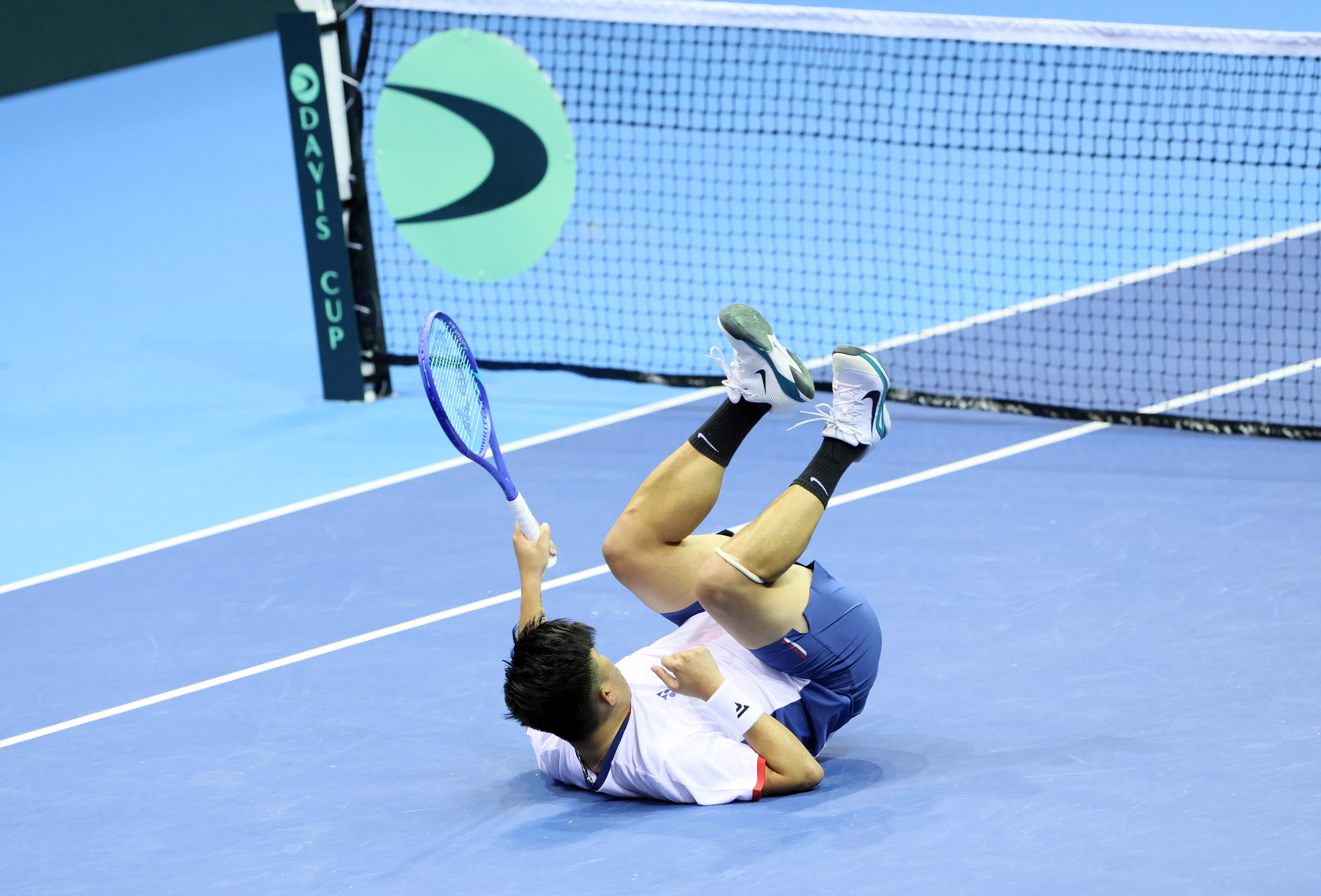 2026年台維斯盃國際男子網球團體錦標賽世界一級升降賽中華vs黎巴嫩,今天在臺北市網球中心展開次日角逐,關鍵第3點雙打,謝政鵬賽前吞完止痛藥,帶著右踝扭傷與雙腳痛風上場,聯手黃琮豪以7比6(6)、6比3擊退Benjamin Hassan/Hasan Ibrahim,助我方取得2比1聽牌優勢。