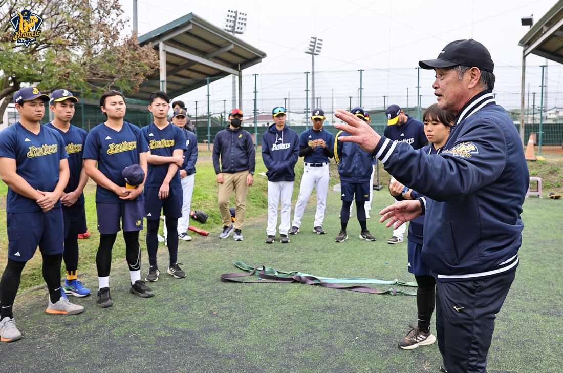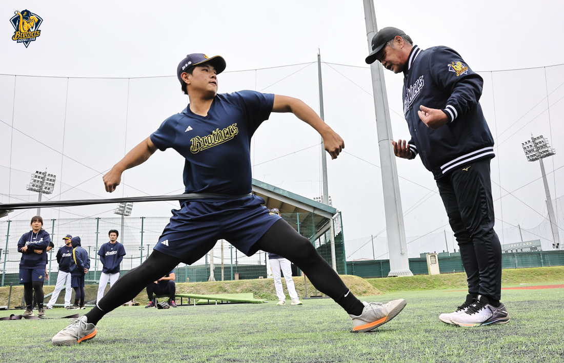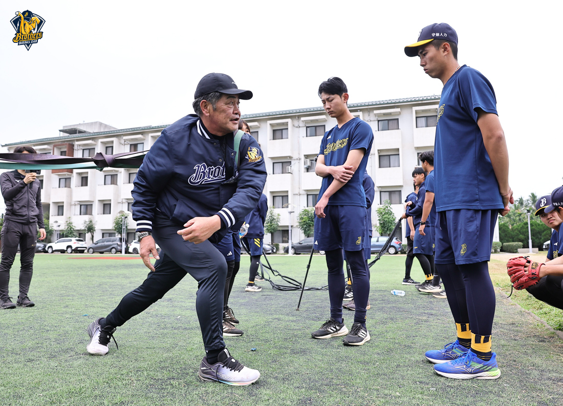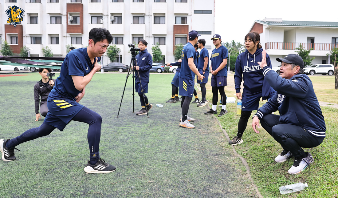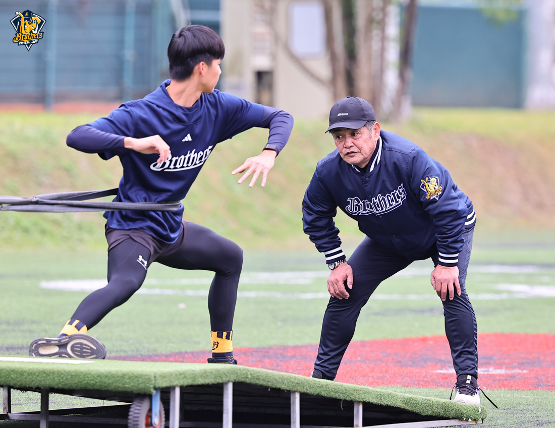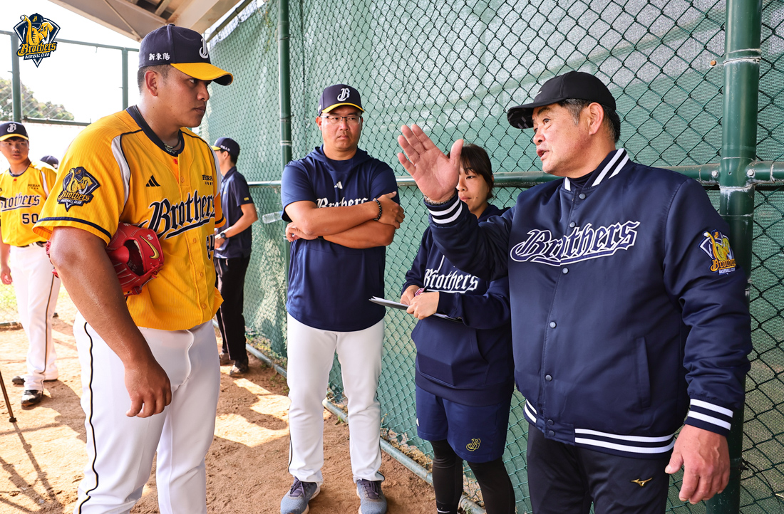 工藤公康實地驗收訓練成果。他的經驗與專業,正持續在兄弟投手群中發酵,他專注投入一對一指導,不僅傳授實戰心法,更結合運動科學與運動醫學觀點,協助投手打造更穩定、更具爆發力,且更強健的身體素質。