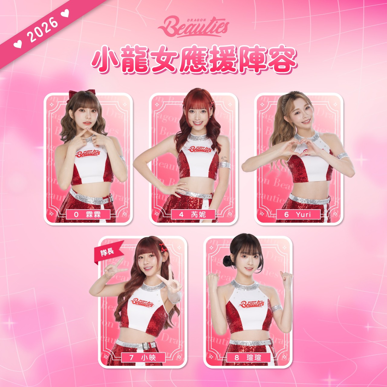 味全龍啦啦隊「Dragon Beauties 小龍女」今(9)日公布2026年度陣容。球迷粉絲最為關注的超人氣韓籍成員李多慧,以及金娜妍、權喜原「三本柱」皆續留隊中,原練習生「瑄瑄」、「姵宸」及「貝拉」則將在新球季轉為正式成員,另補強兩名新練習生,分別是擁有迷人電眼的「張愛」與可愛魅力爆棚的「佳依」,一同為團隊增添新戰力。