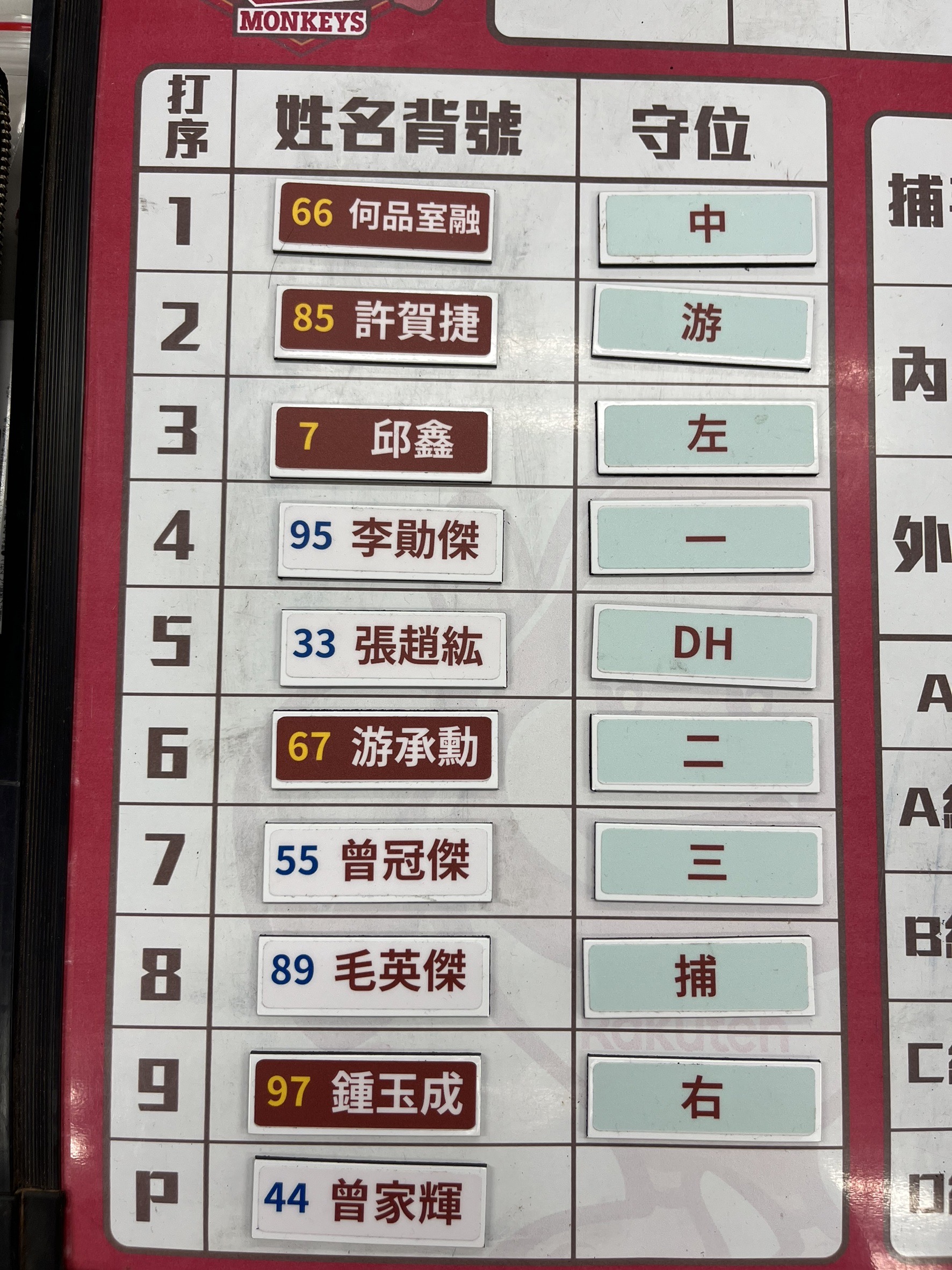 2026亞洲門戶交流戰,樂天桃猿出戰羅德隊,今天將在石垣島開打,樂天先發打線出爐,由何品室融先發打一棒,四棒由李勛傑先發,先發投手為曾家輝。