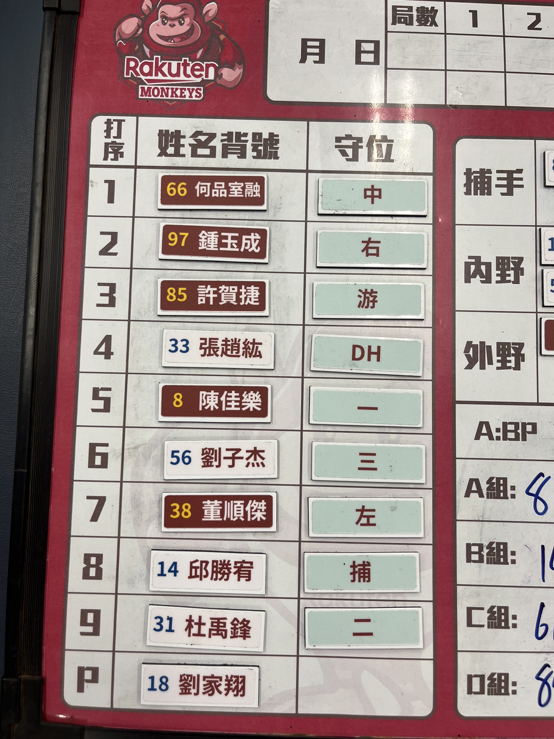 樂天打線如下: