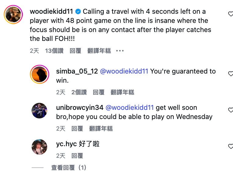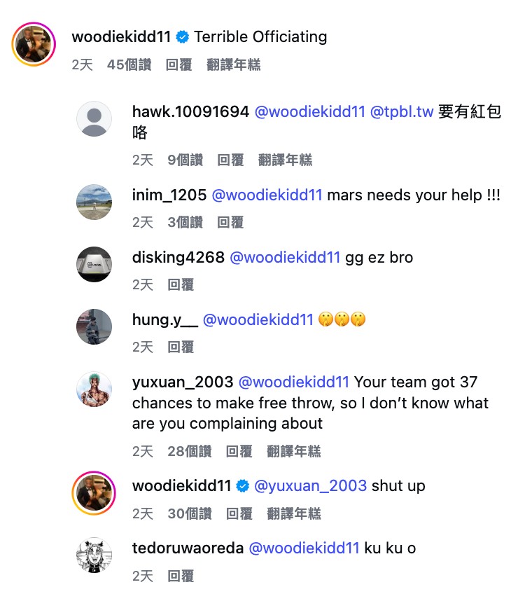 基德留言。(截圖自TPBL IG)