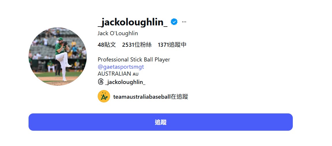 Jack O'Loughlin已經將社群調整為私人狀態。(截圖自Jack O'Loughlin IG)