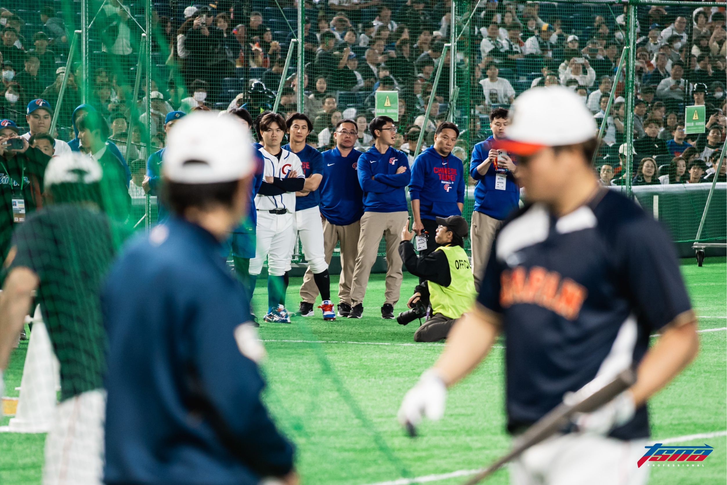 每當大谷擊出高飛球,看台便傳出「喔——!」的驚呼與掌聲,場內提醒注意飛球的工作人員哨聲也此起彼落。就連在場的台灣球員都跑出來看大谷的打擊練習,看到這樣的打擊表現,也不禁看傻眼。