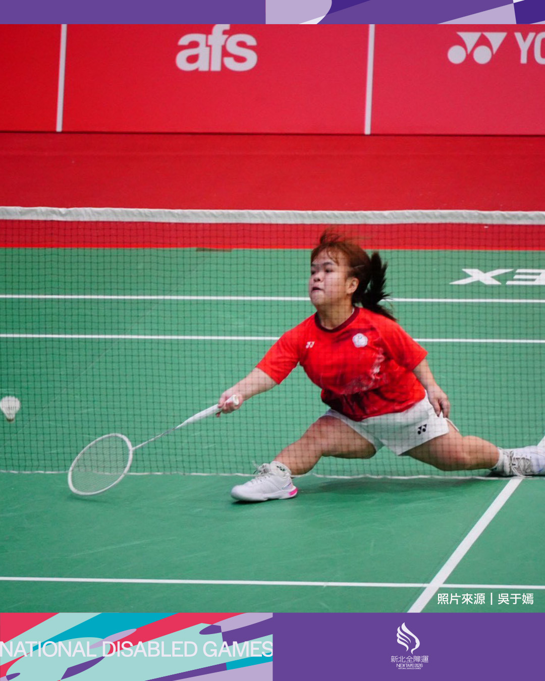 115年全國身心障礙國民運動會將於5月23日至26日在新北市進行,這是羽球好手吳于嫣第四次角逐,不過卻是她首度以地主身份迎戰。值得一提的是,羽球比賽場館之一在新北市立新北高級中學,正是吳于嫣日常練習訓練的地方,這也讓她既有點緊張,也相當期待。
