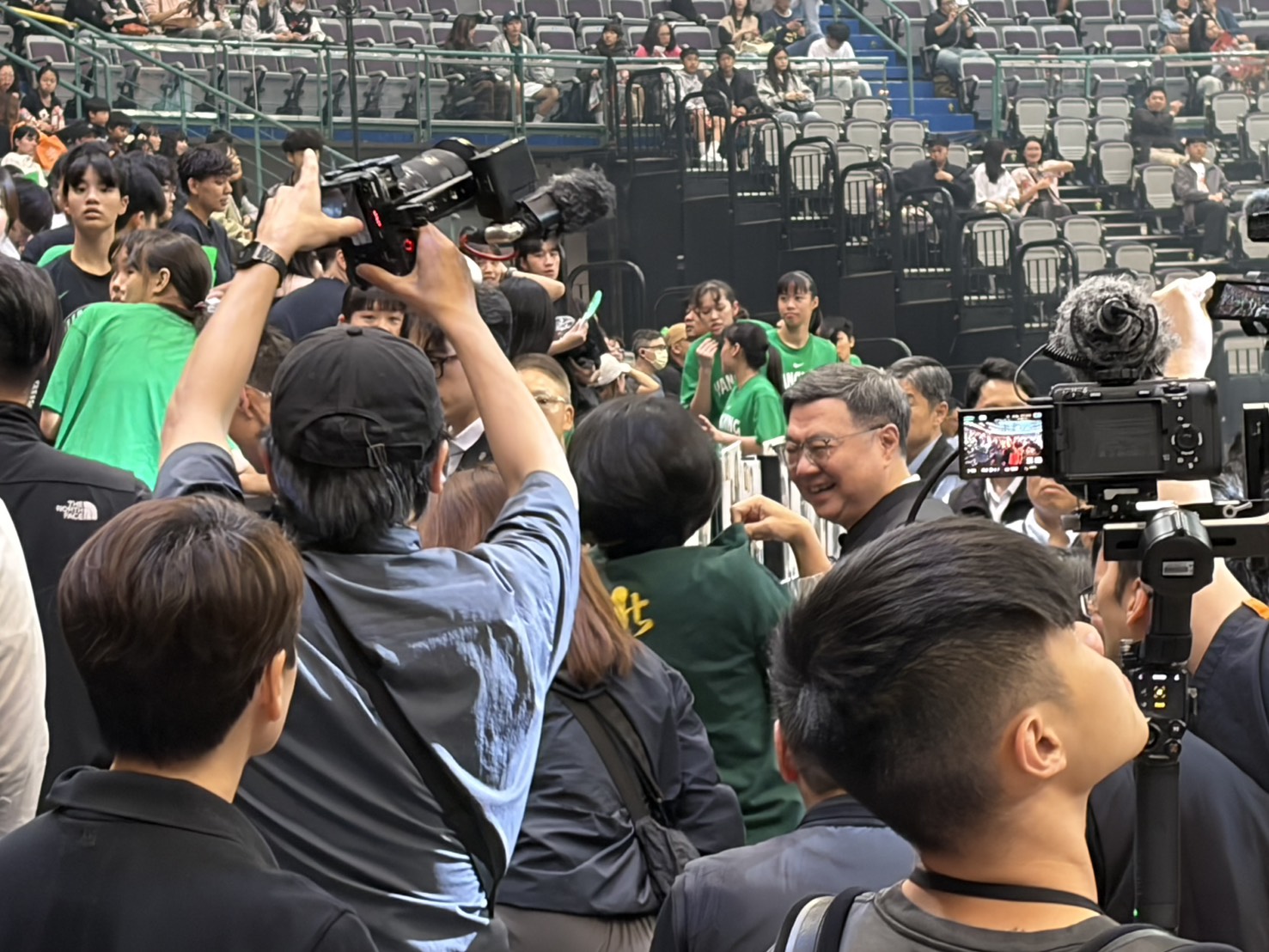 114學年度HBL高中籃球聯賽決賽今天在台北小巨蛋登場,男子組由南湖高中出戰松山高中,女子組由北一女中出戰陽明高中,賽前行政院長卓榮泰、運動部長李洋、台北市長蔣萬安都到場觀戰。
