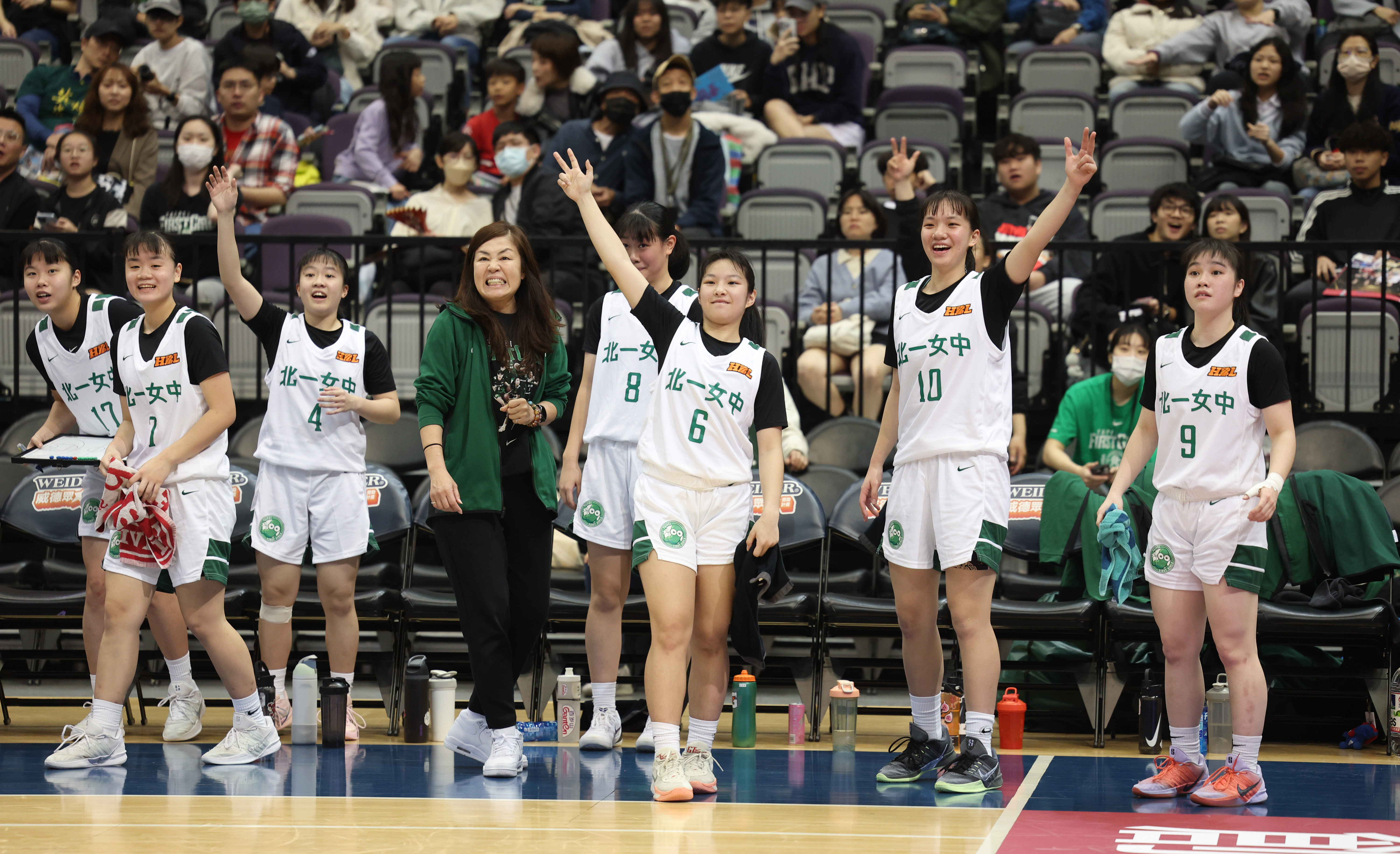 HBL高中籃球聯賽決賽今天在台北小巨蛋登場,男子組由南湖高中出戰松山高中,女子組由北一女中出戰陽明高中,女子組賽前行政院長卓榮泰、運動部長李洋、台北市長蔣萬安都到場觀戰。