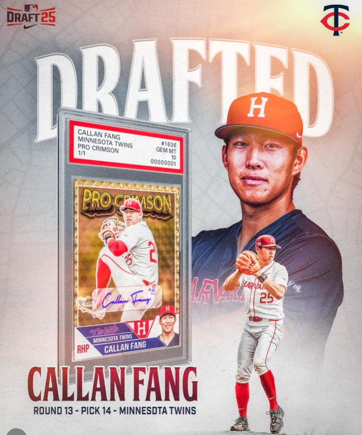 去年在選秀第13輪被雙城選中的投手Callen Fang,來自哈佛大學的王牌投手,Callan的父母都是亞裔美國人,祖父是台灣人。