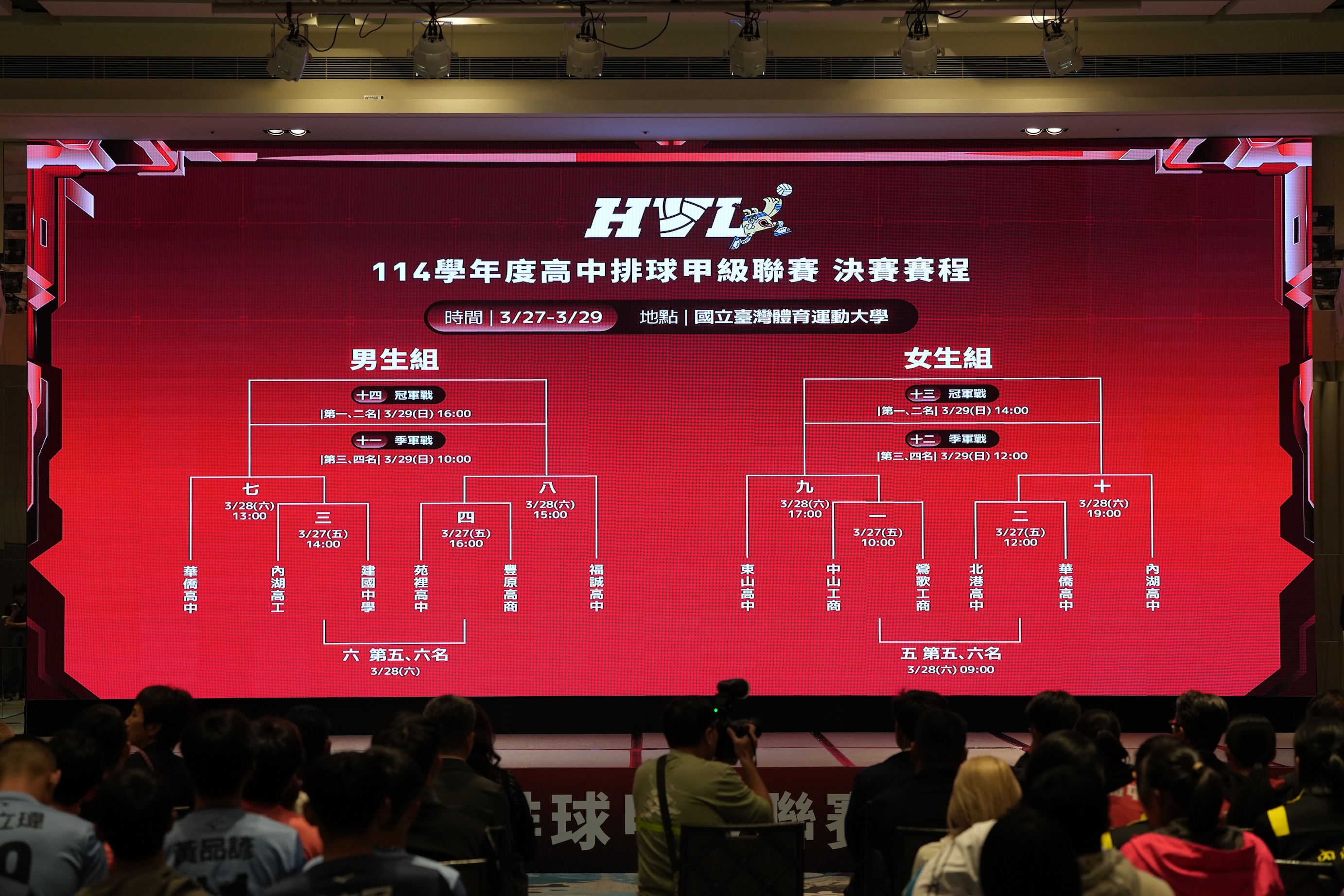 114學年度HVL高中排球甲級聯賽決賽將於3月27、28、29日進行,高中體總會長胡劍峯今天表示,決賽將首度在臺中國立臺灣體育運動大學體育館舉行,而HBL日前在臺北小巨蛋落幕,胡劍峯也期許,未來HVL的熱度越來越旺,有朝一日進軍臺北小巨蛋。