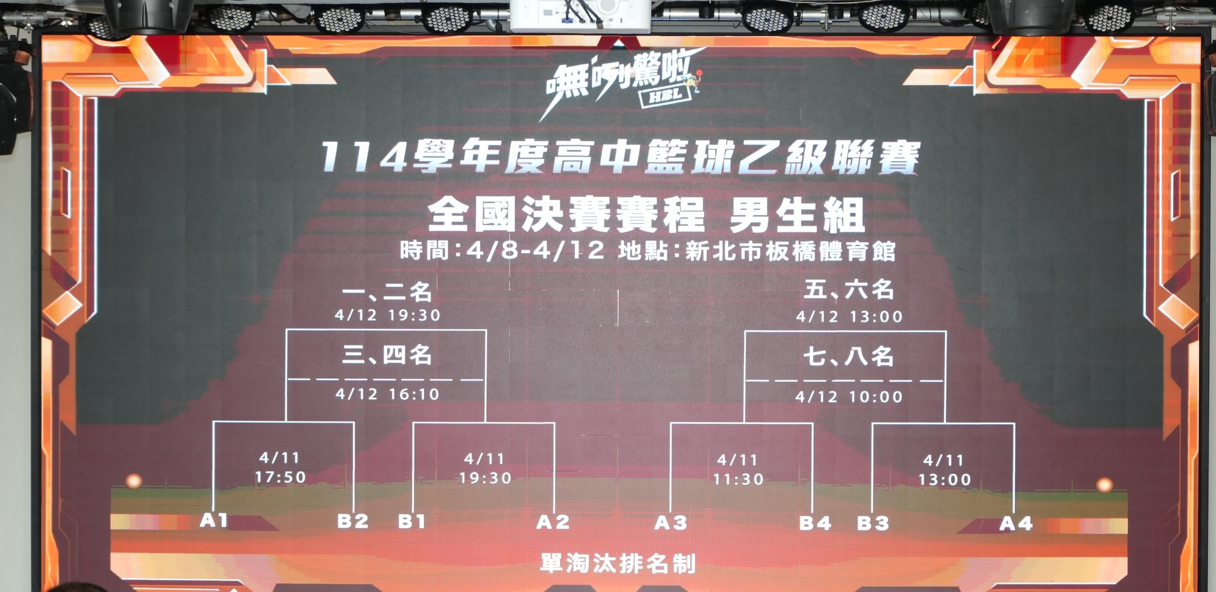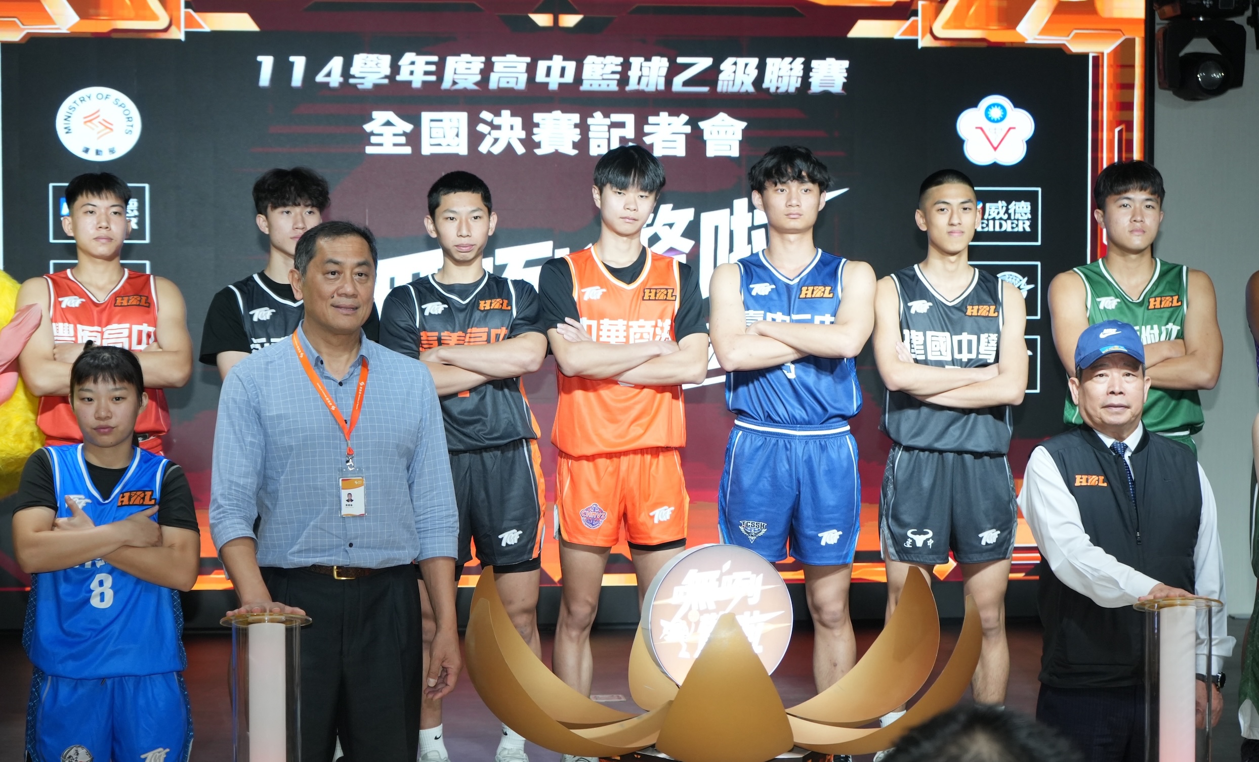 114學年度HBL高中籃球乙級聯賽全國決賽今天召開記者會,宣布賽事在4月8至4月12日於新北市板橋體育館點燃戰火,男、女子組各8隊爭取最高榮耀。運動部專門委員周德倫今天也到場勉勵學子。
